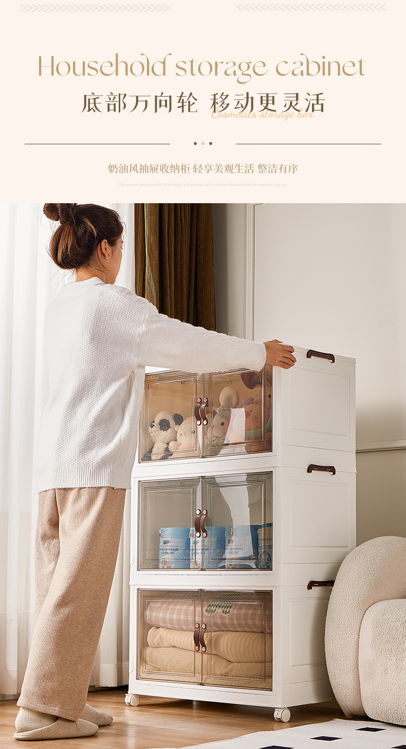 折叠收纳柜塑料卧室置物柜家用被子衣物储物箱多层零食玩具收纳箱