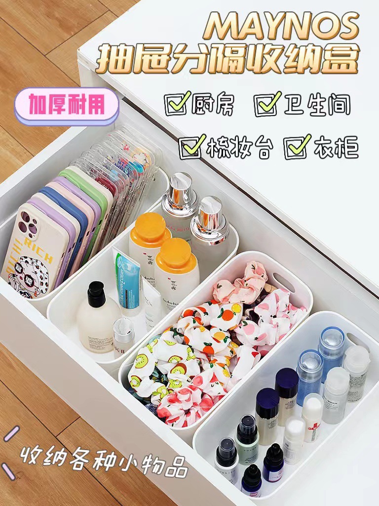 桌面收纳盒化妆品零食手机壳收纳筐家用浴室厨房抽屉整理盒储物盒