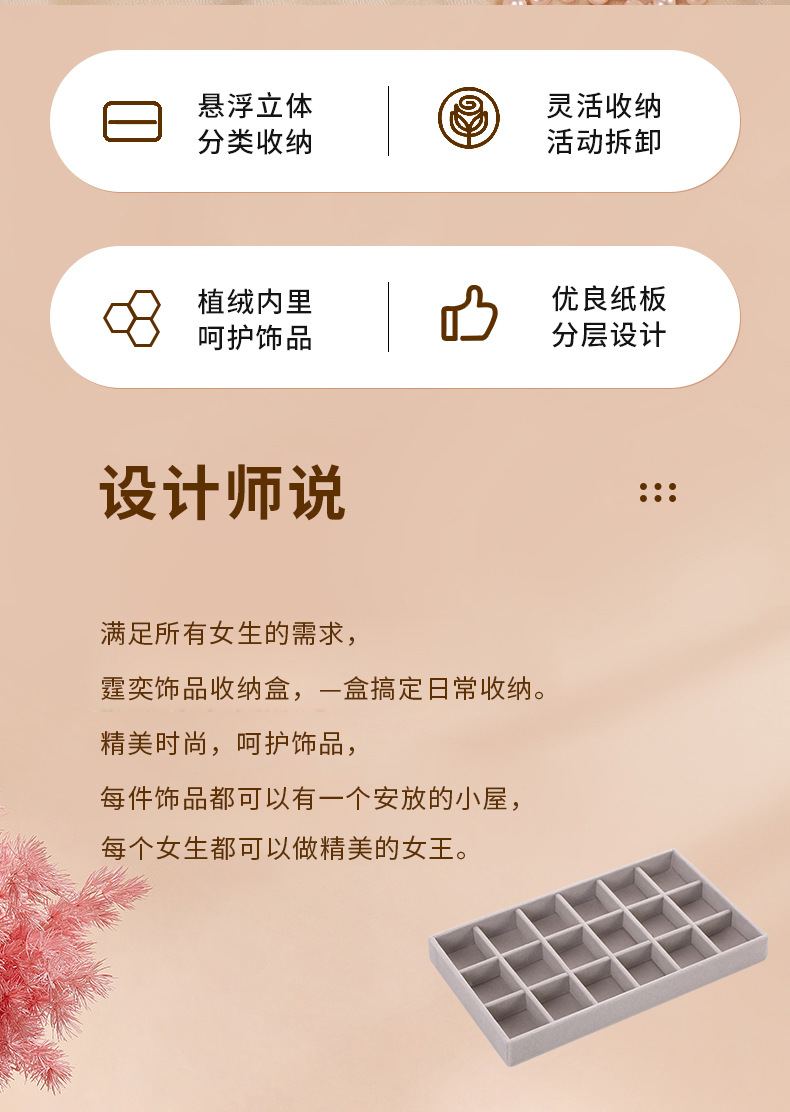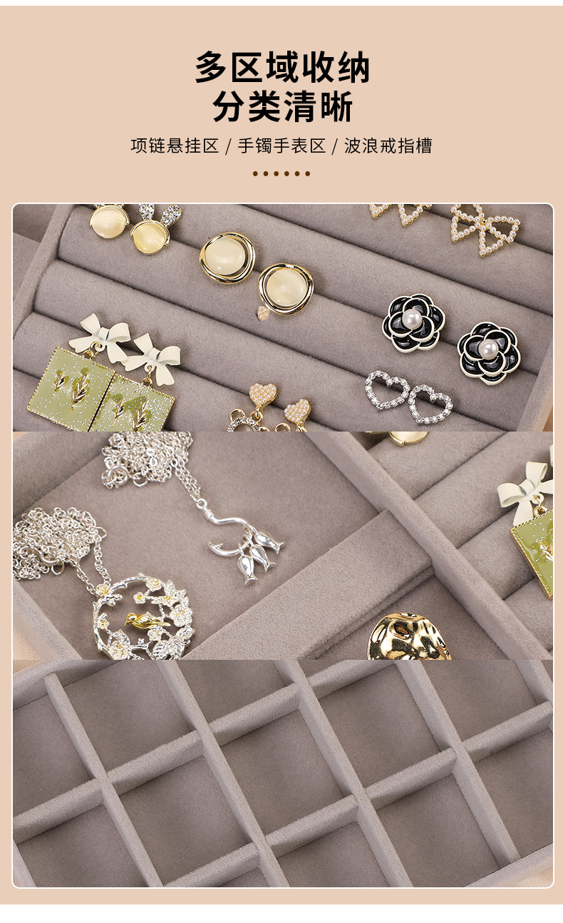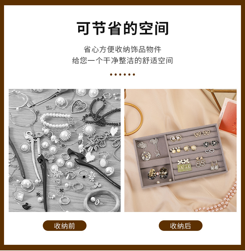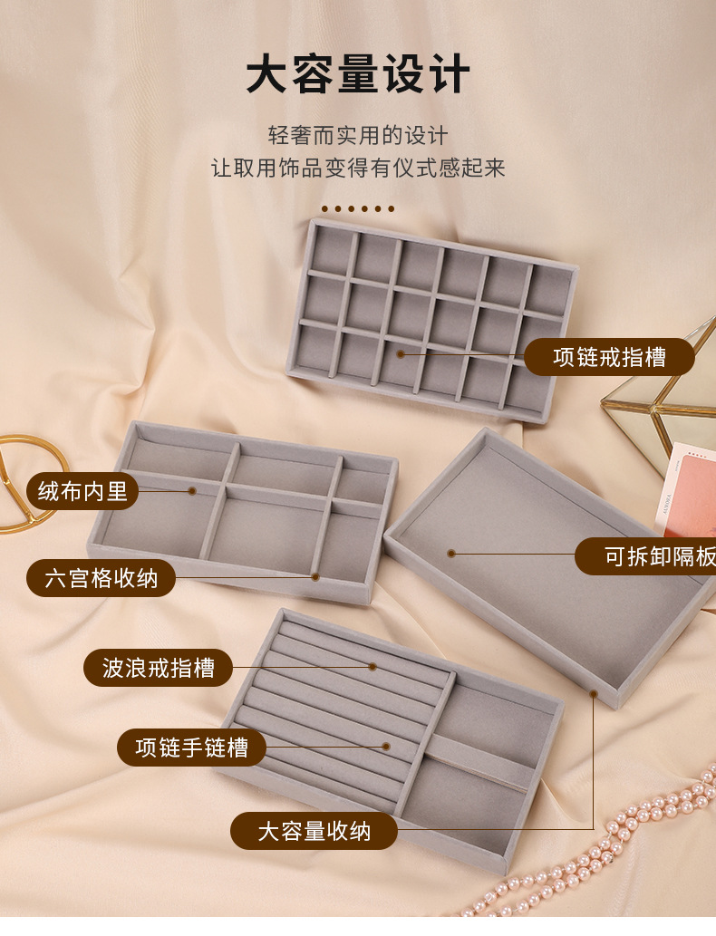 小号首饰盒绒布戒指盒耳钉耳环托盘饰品展示架抽屉式收纳盒