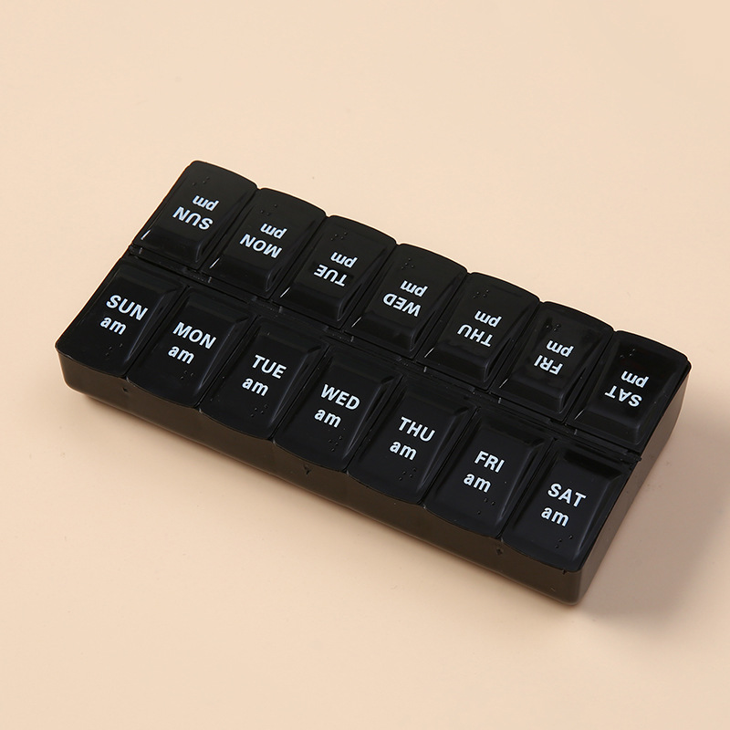 双排分装随身小药盒 七天一周便携大容量药盒 14格开盖药品收纳盒