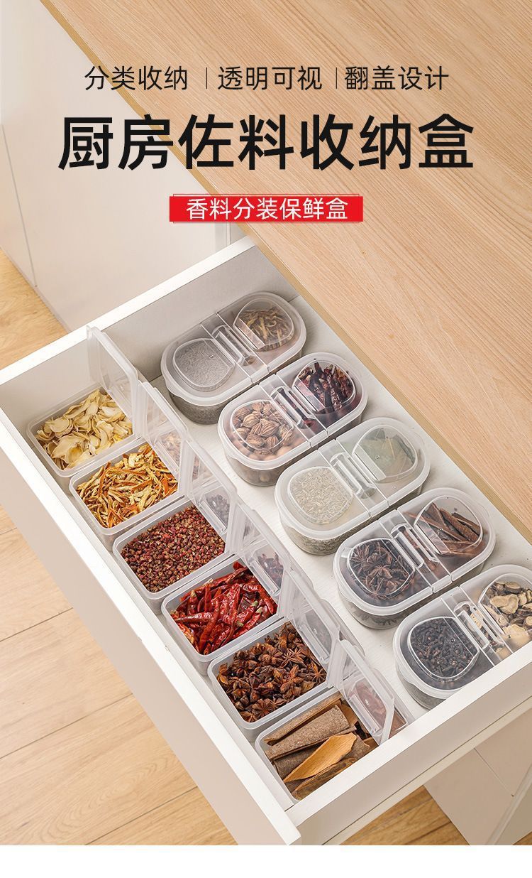 厨房香料收纳盒密封调料盒花椒八角大料桂皮收纳保鲜盒塑料分装盒