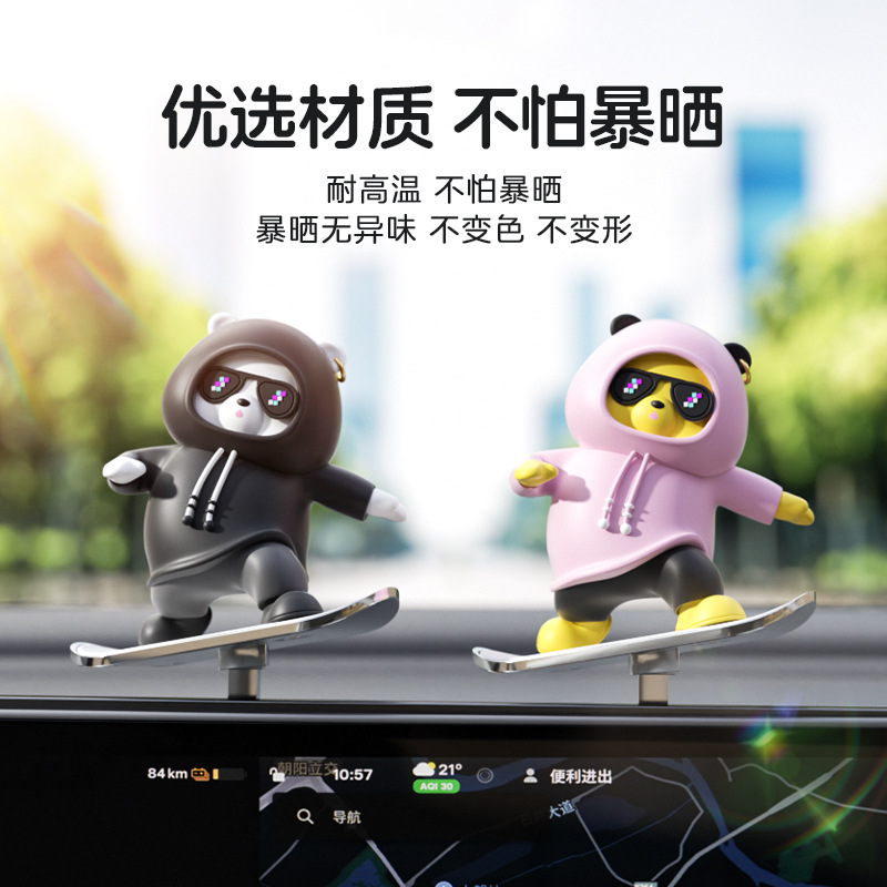 汽车滑板熊滑动摆件车载卡通动动熊中控屏幕仪表台小熊新款车摆件