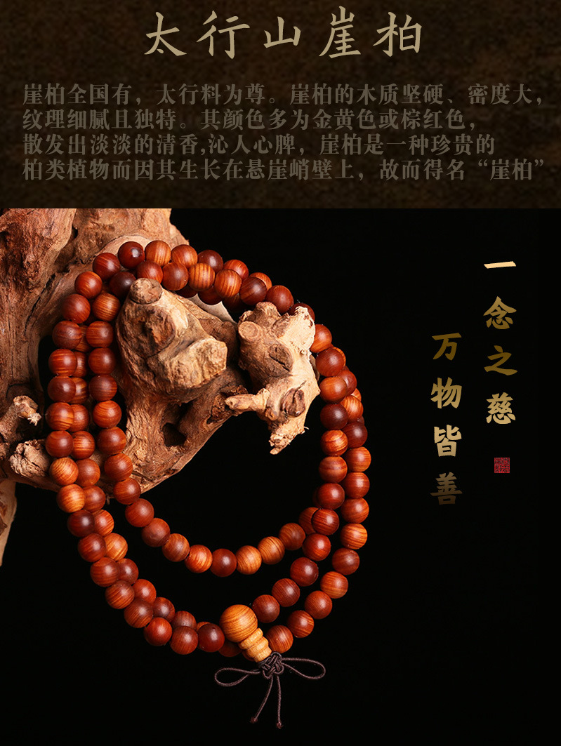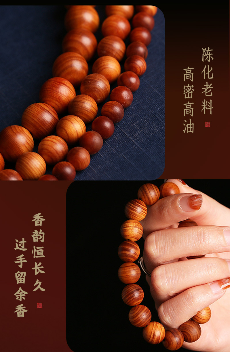太行崖柏手串陈化料高油红油老料香木念珠佛珠木质文玩男女手链