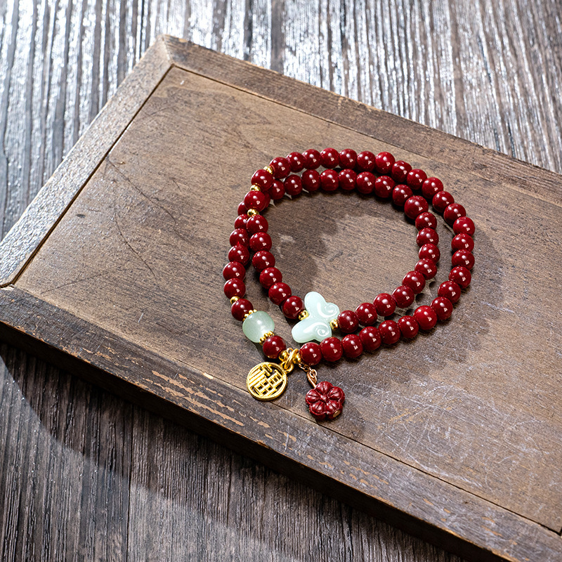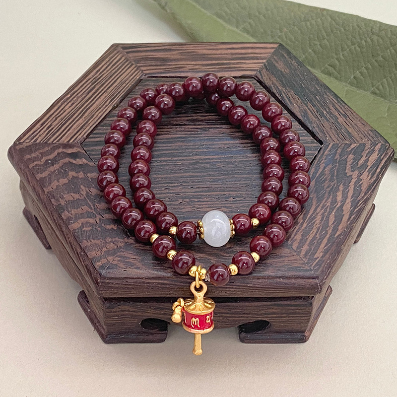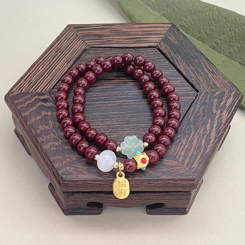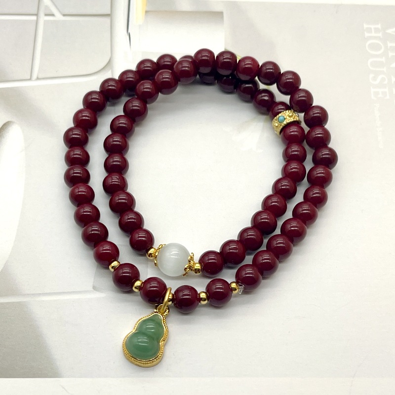 双圈仿朱砂手链时尚diy葫芦吊坠手串直播饰品热卖工艺品