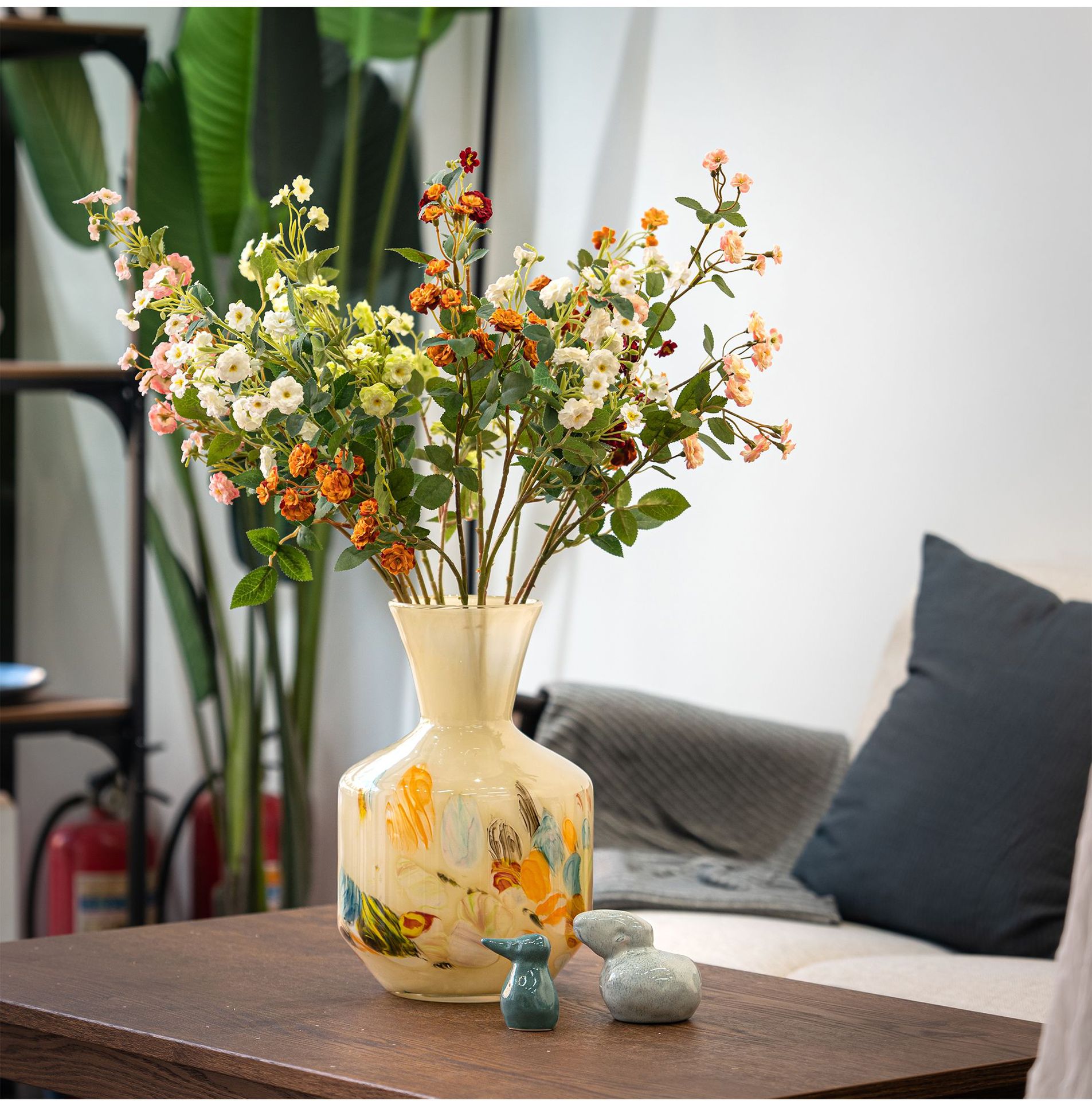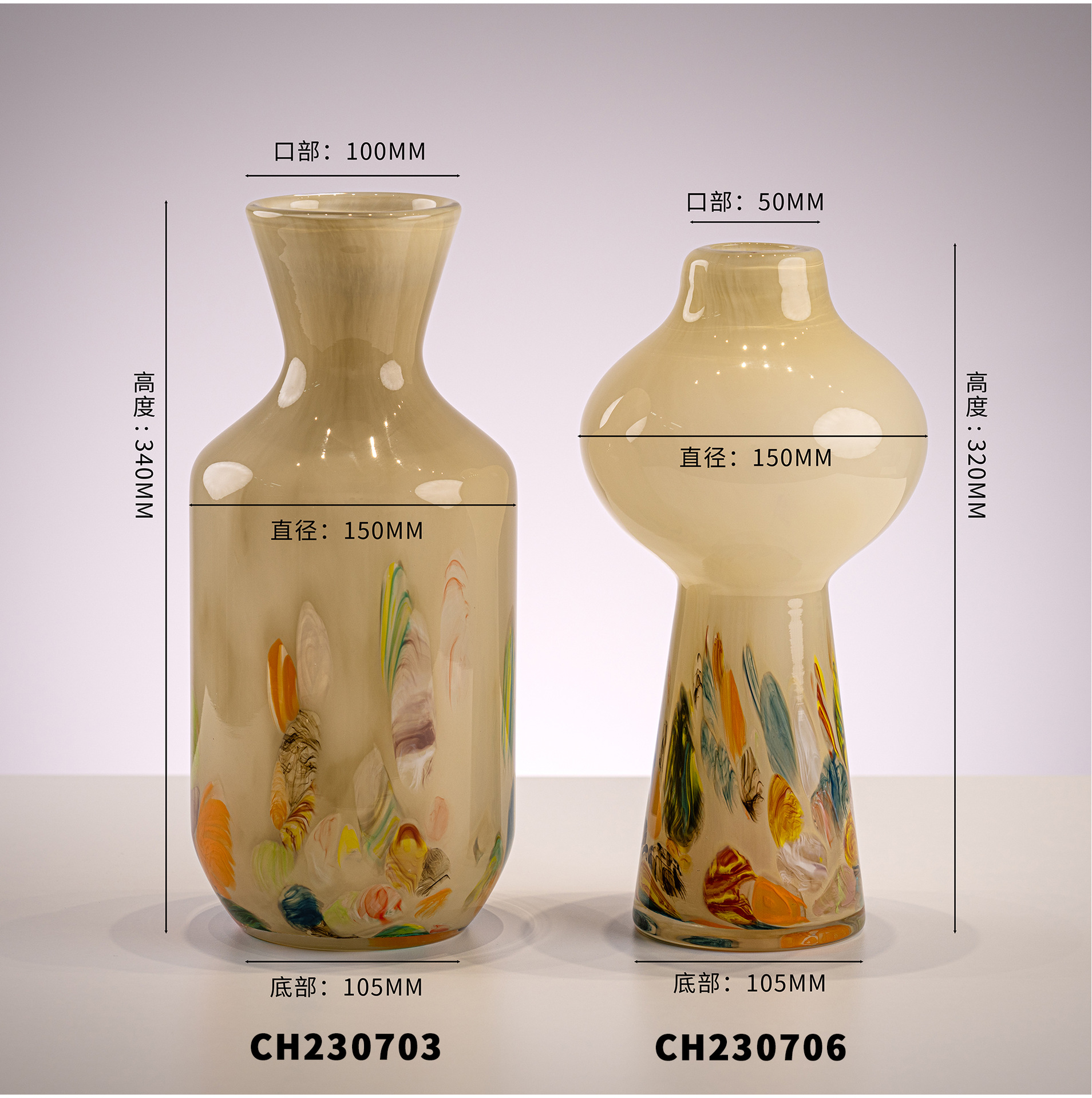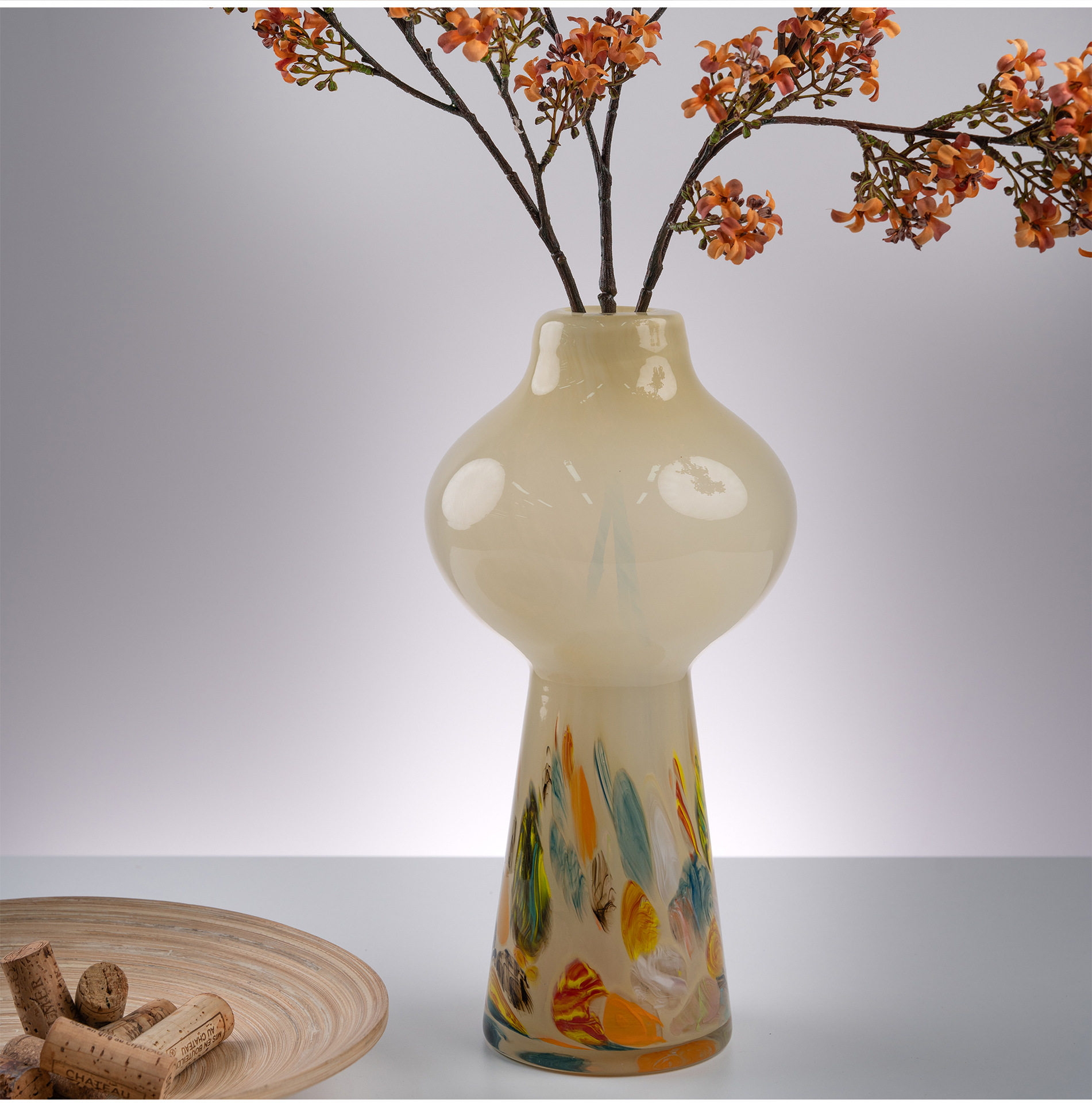 原色人工吹制中古芬顿创意玻璃花瓶样板房客厅家居摆件琉璃工艺品