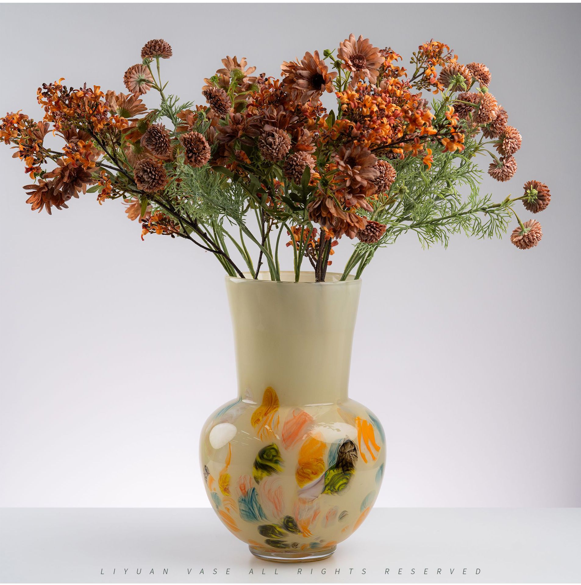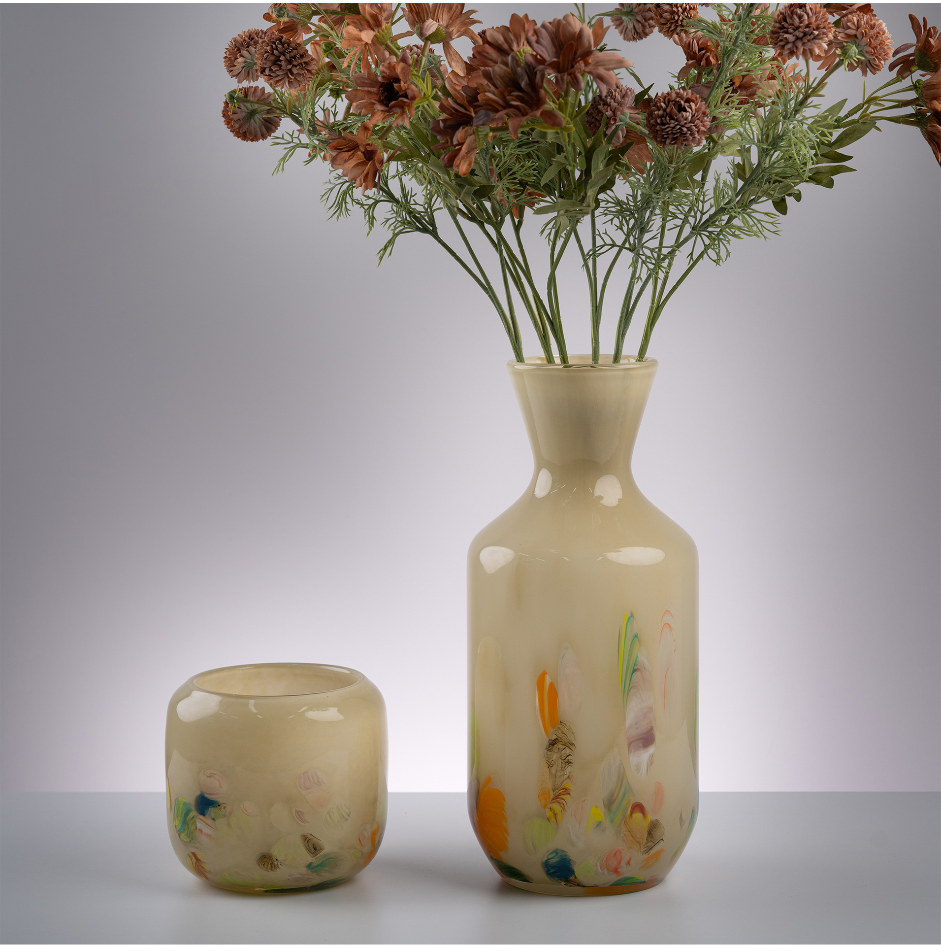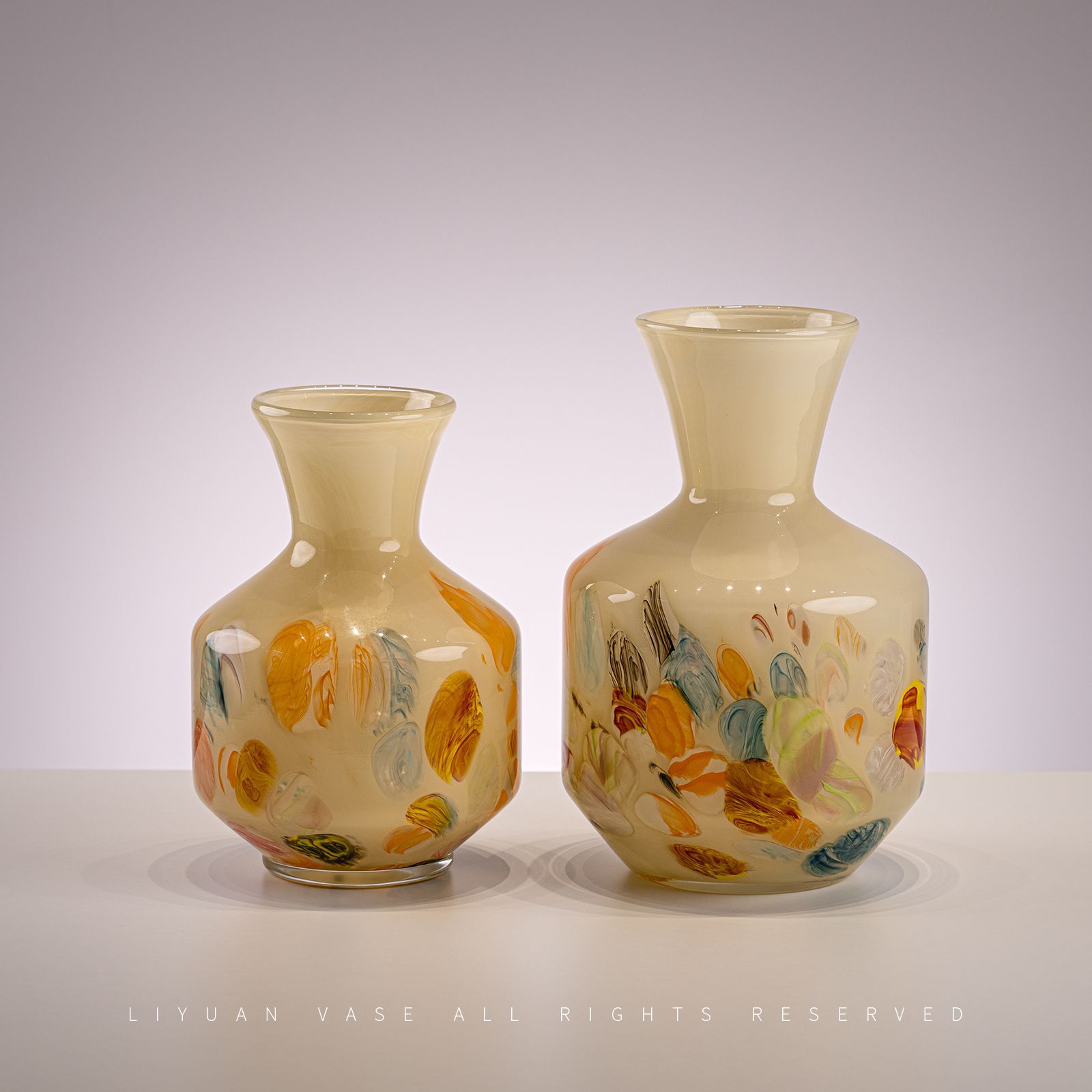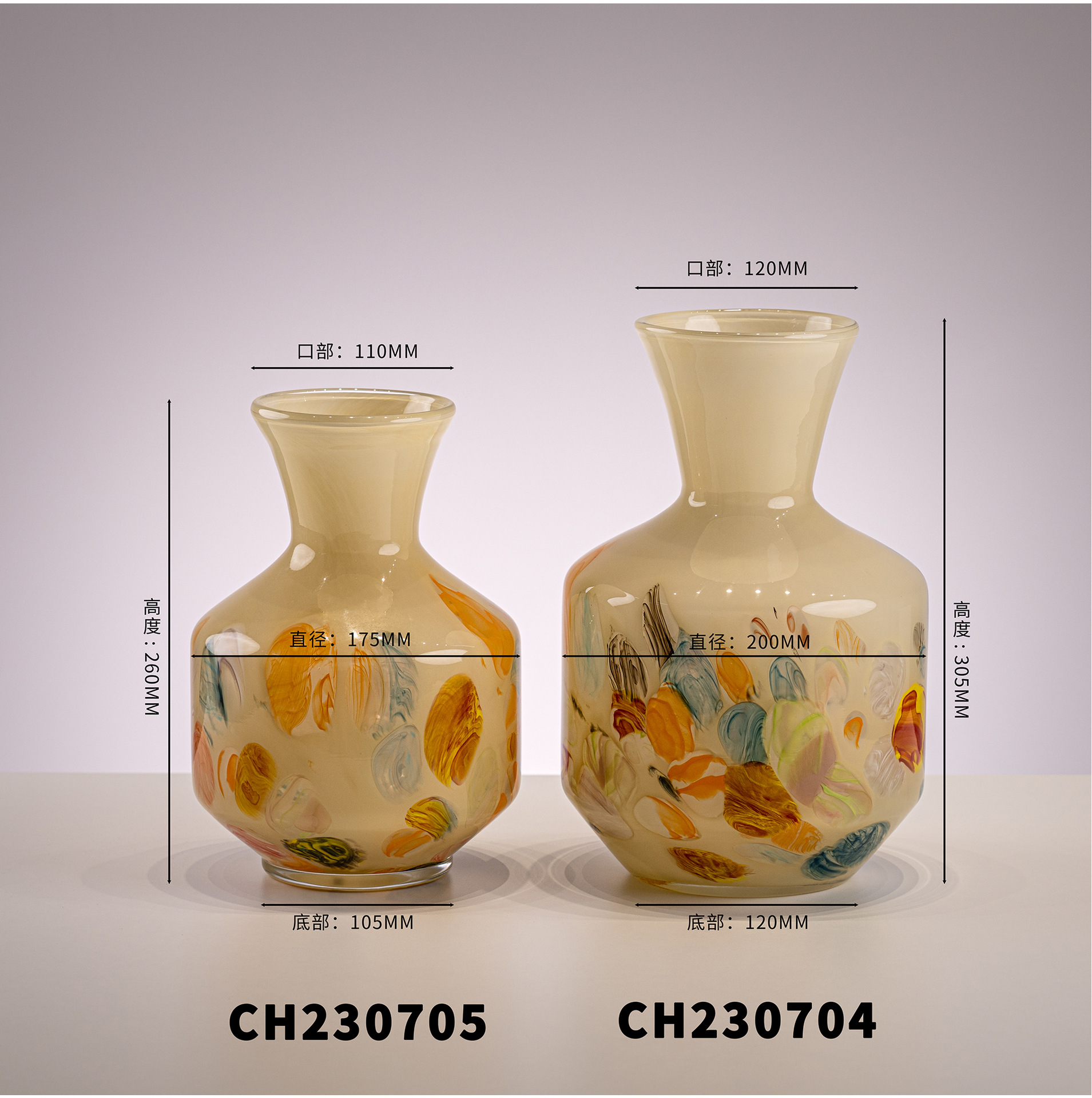 原色人工吹制中古芬顿创意玻璃花瓶样板房客厅家居摆件琉璃工艺品