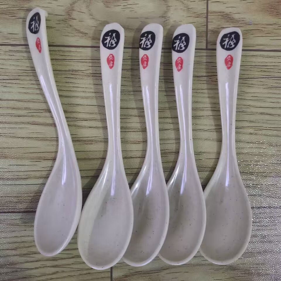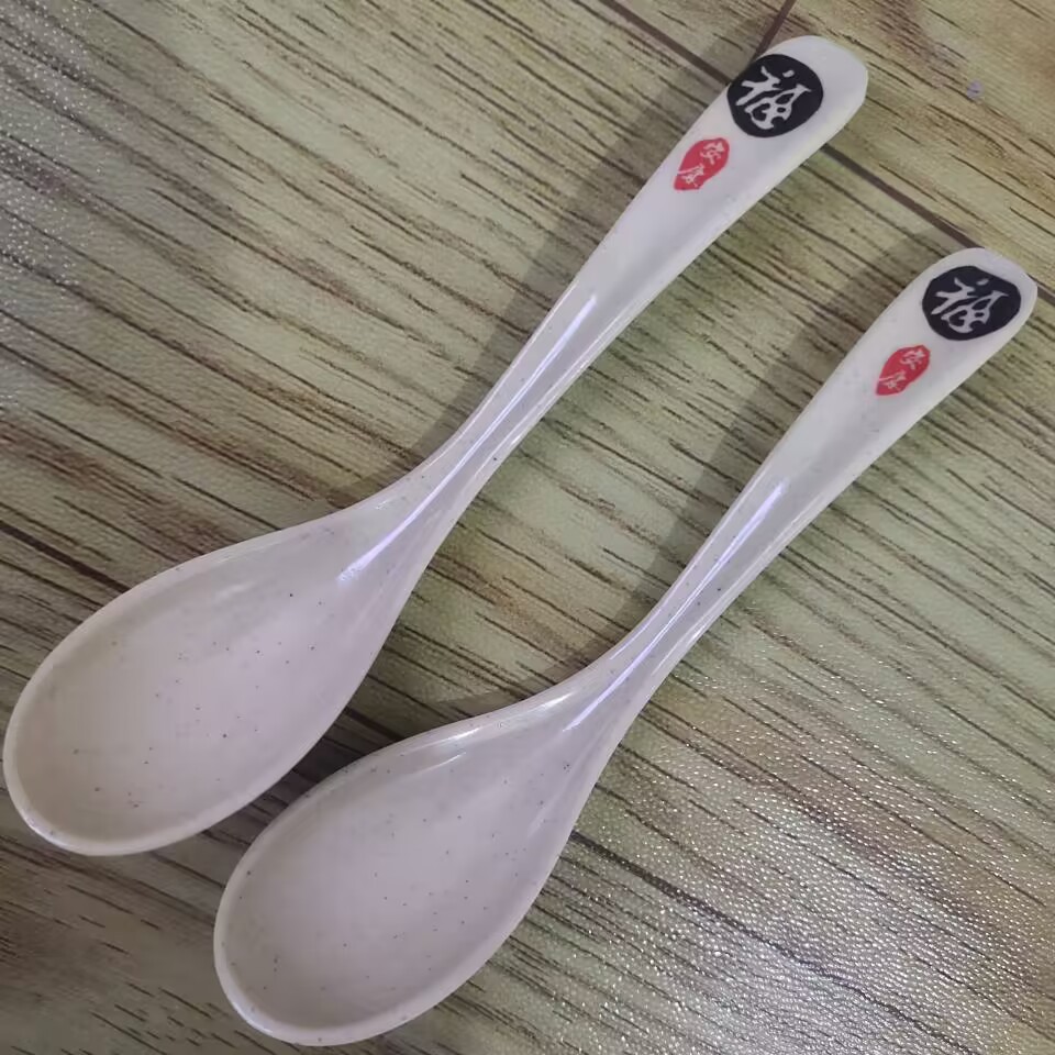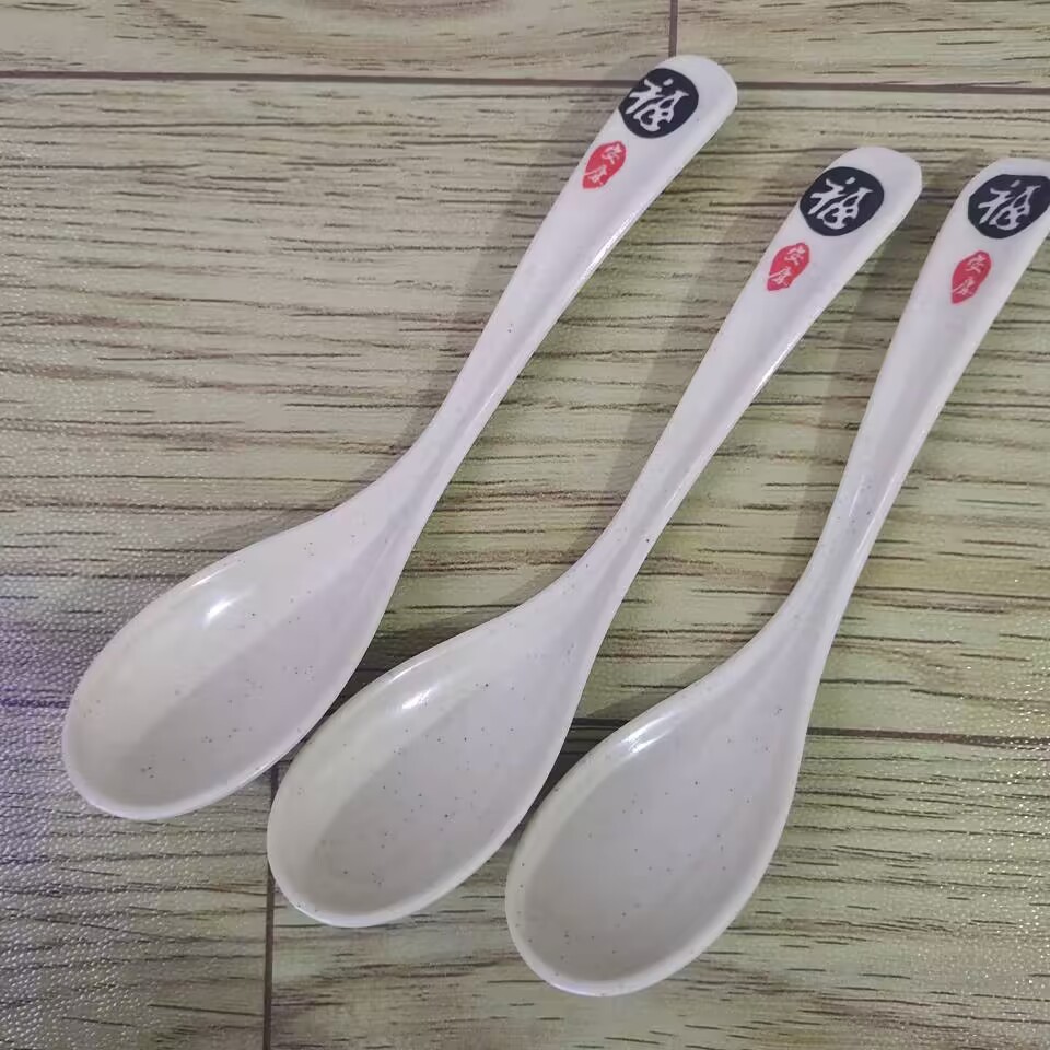 205五福勺吃饭勺密胺勺带钩树脂勺子家用塑料调羹仿瓷勺饭店餐具