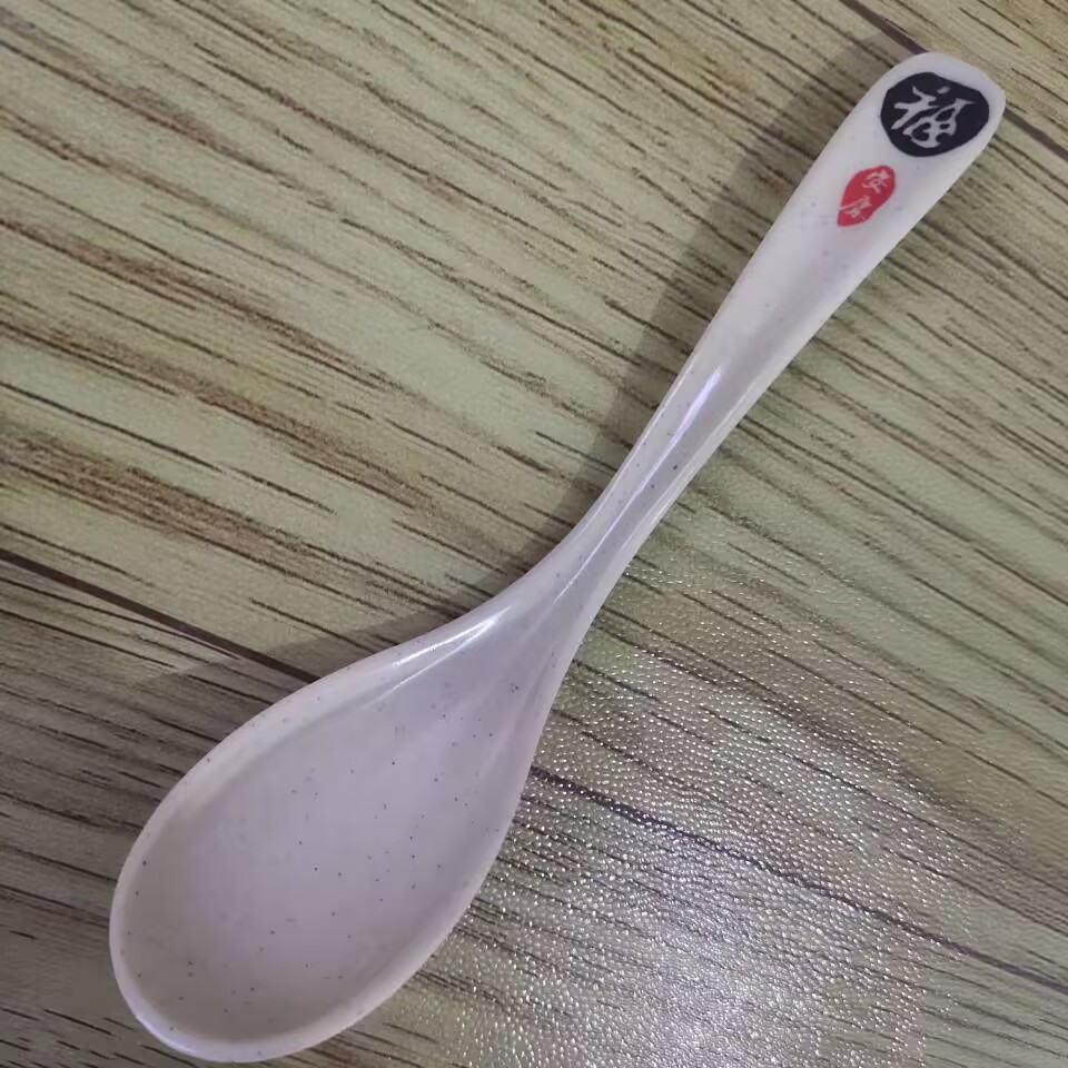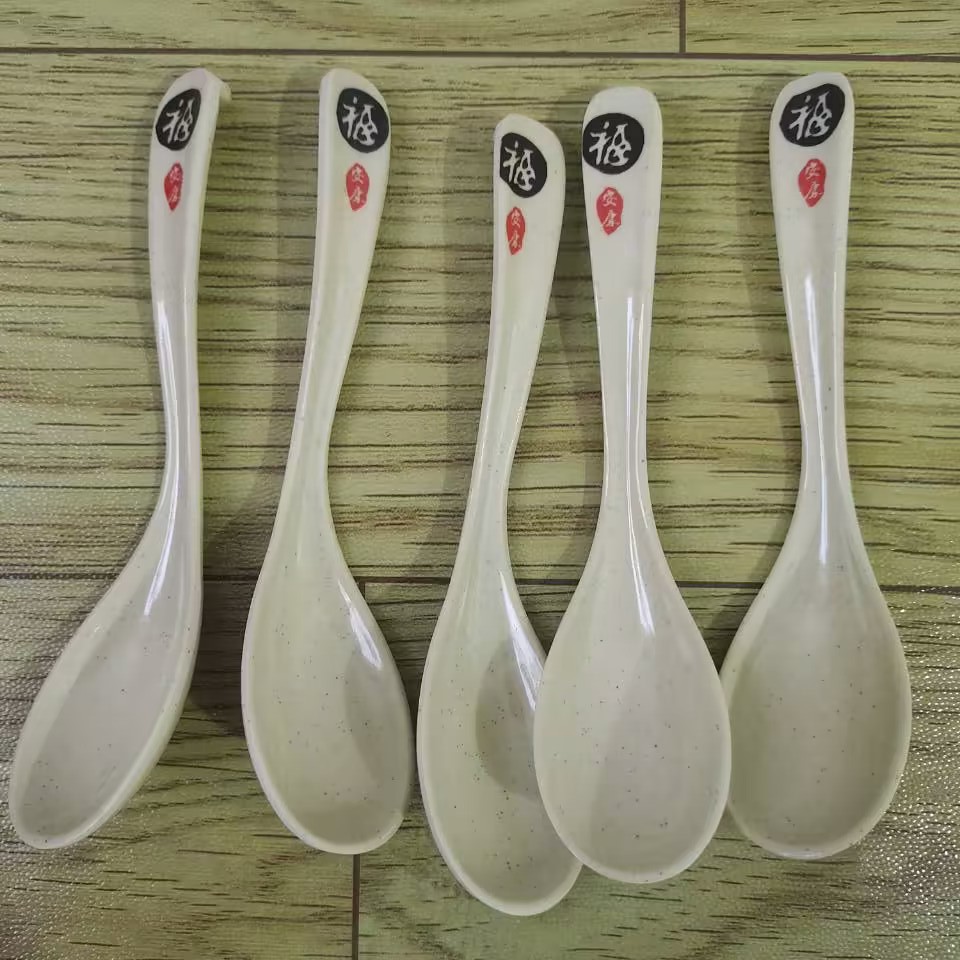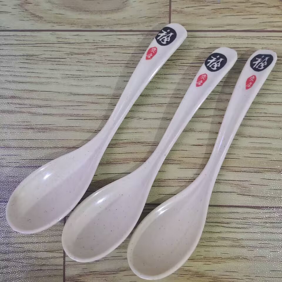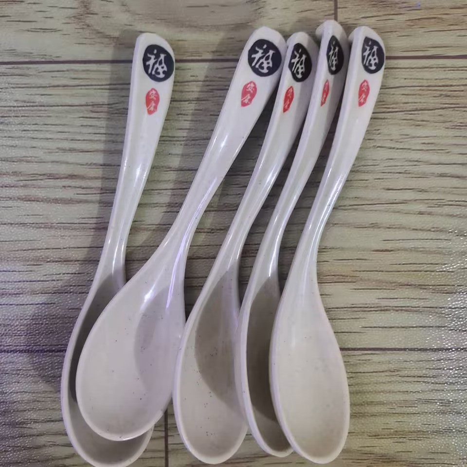 205五福勺吃饭勺密胺勺带钩树脂勺子家用塑料调羹仿瓷勺饭店餐具