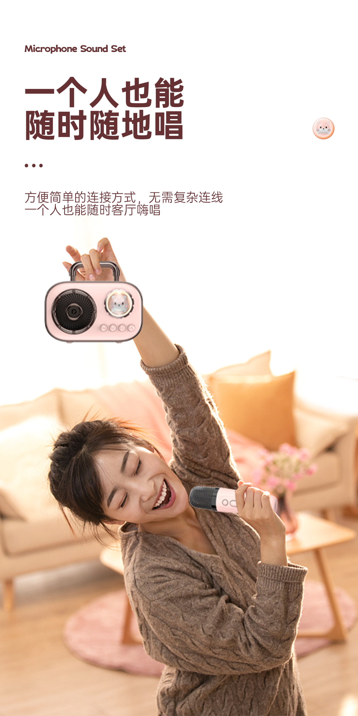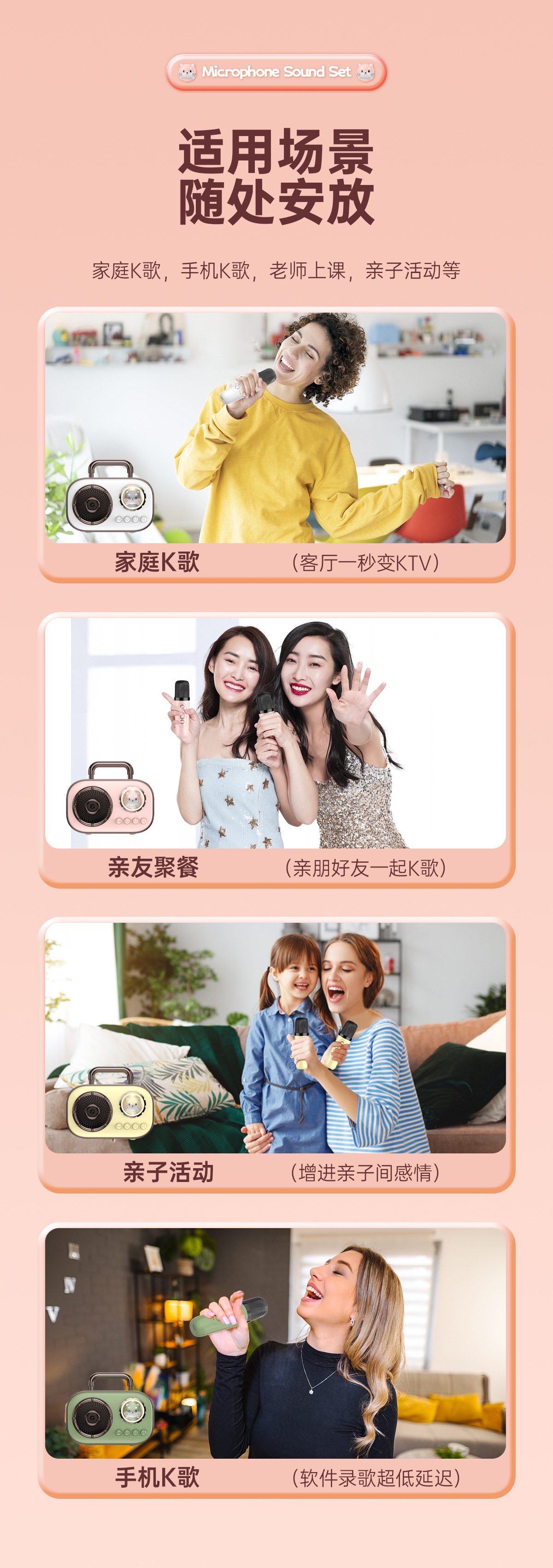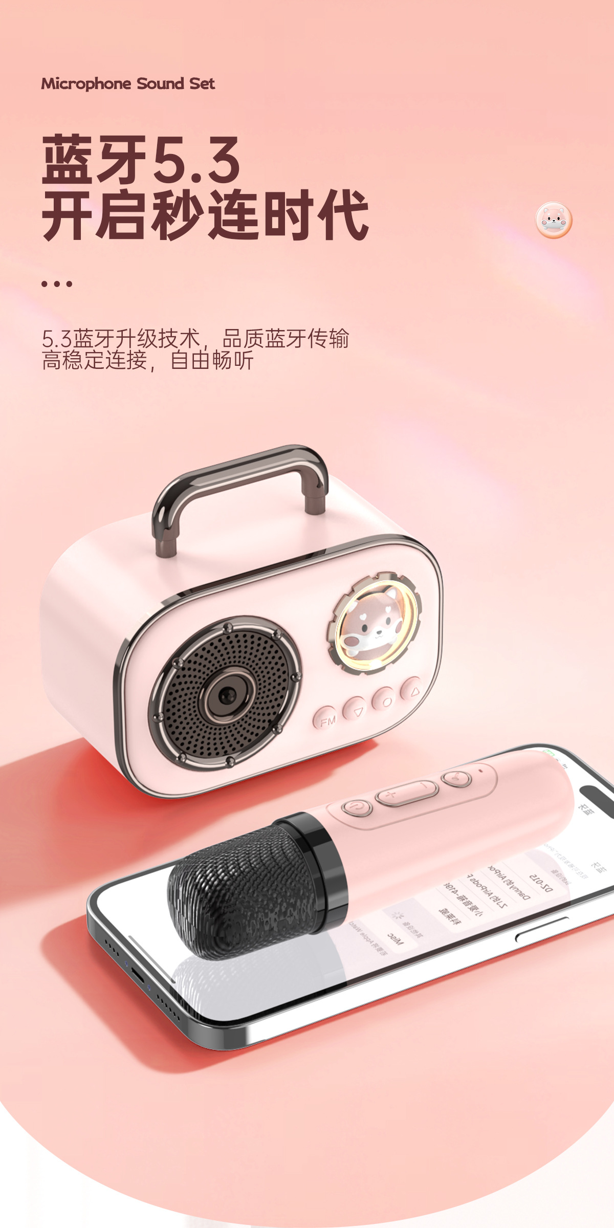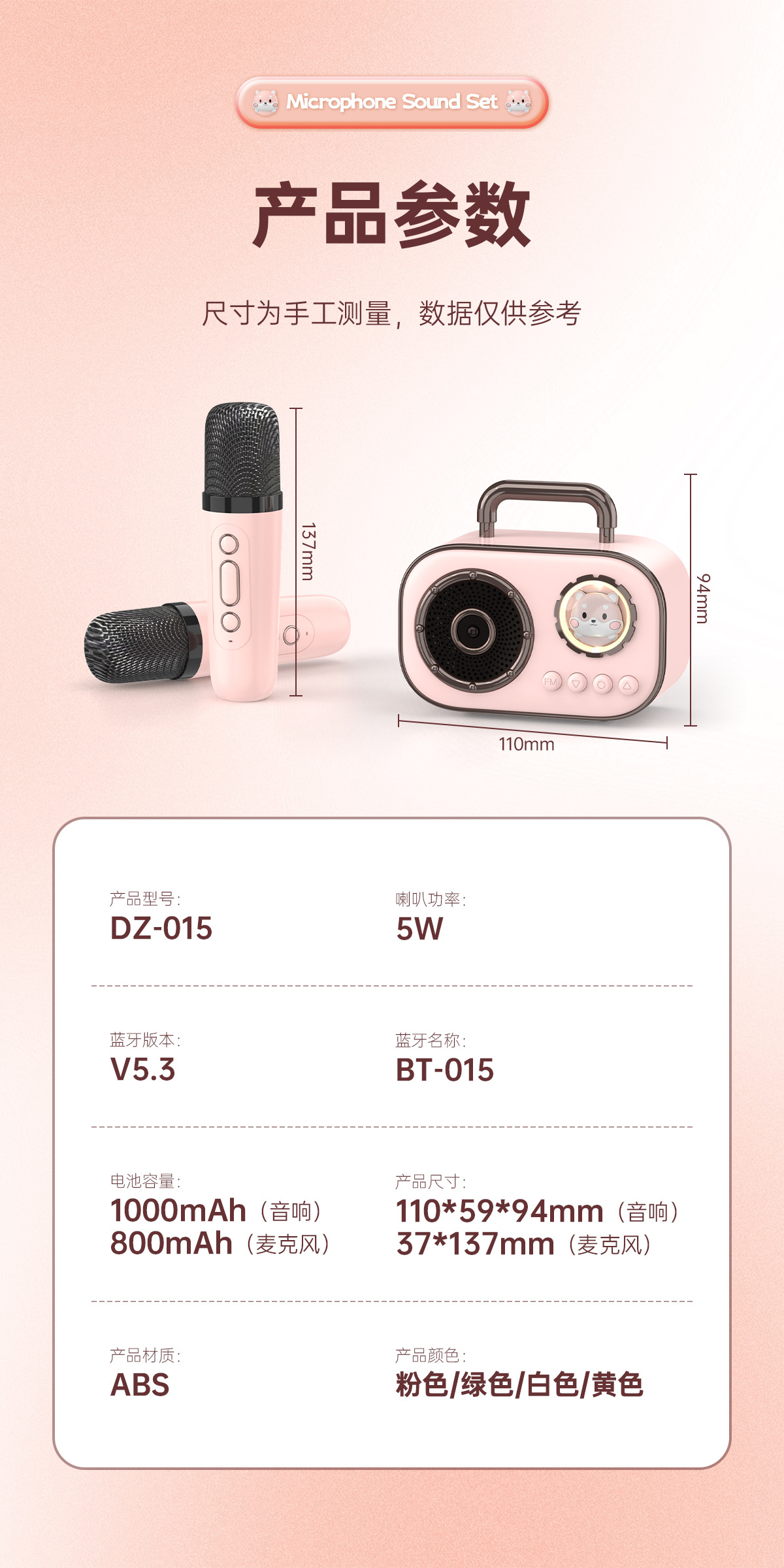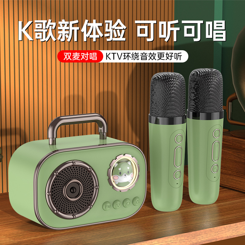 跨境BT-015蓝牙音箱插卡式带单双麦一体式K歌家庭户外迷你便携式