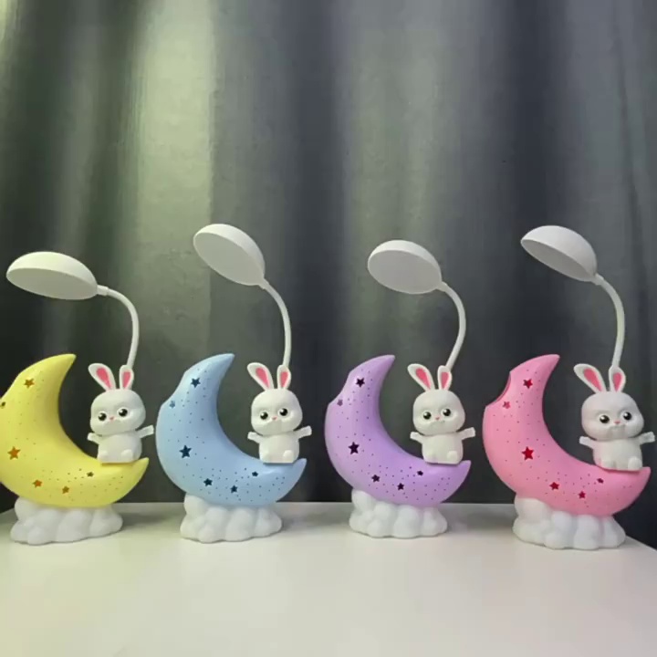 网红月亮小夜灯卧室充电台灯卡通兔子宇航员床头灯ins浪漫氛围灯