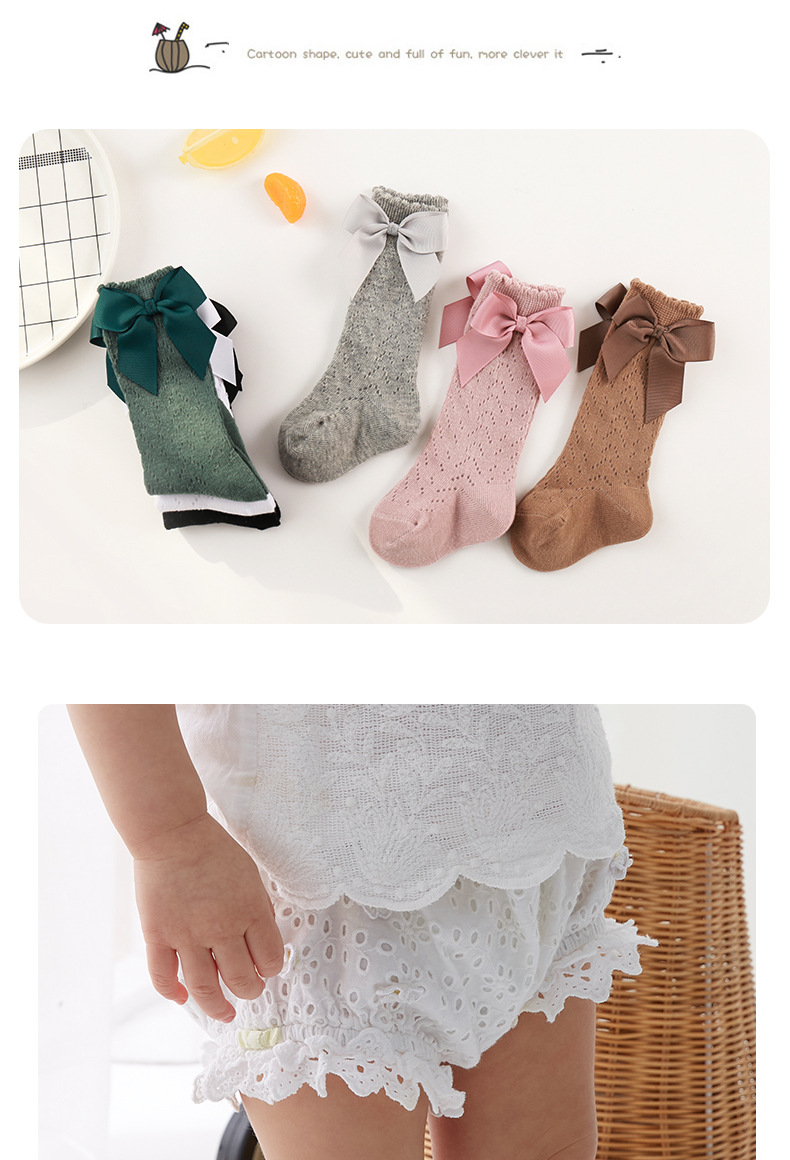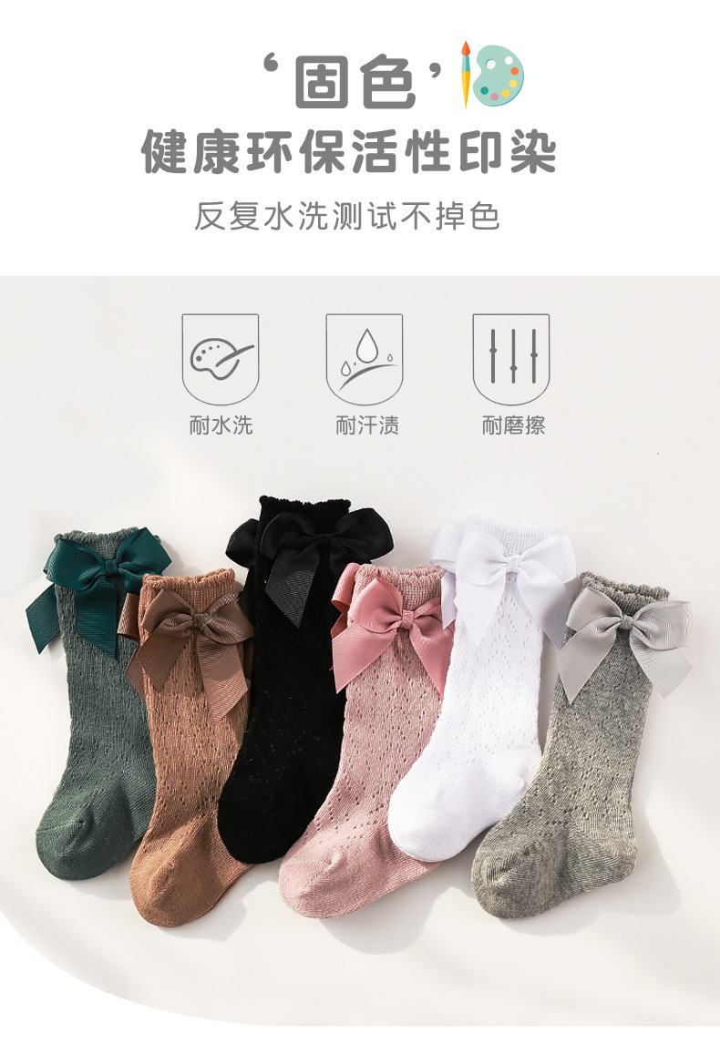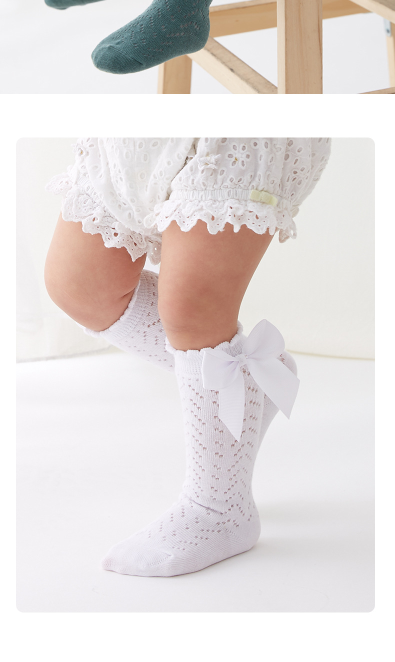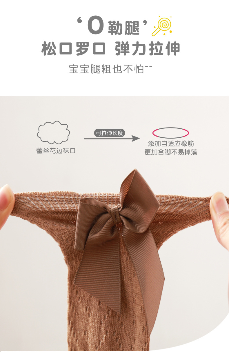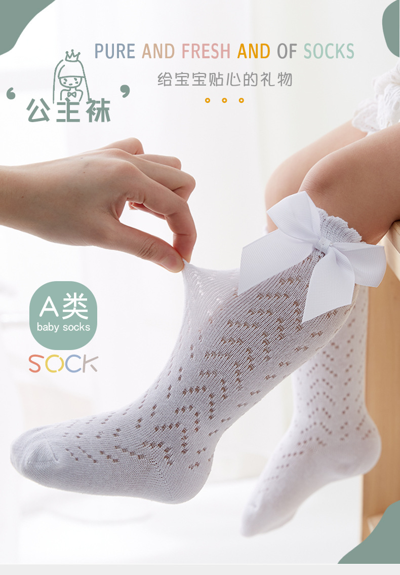 夏季薄款网眼女童袜子蝴蝶结儿童中筒袜公主宝宝婴儿长筒袜西班牙