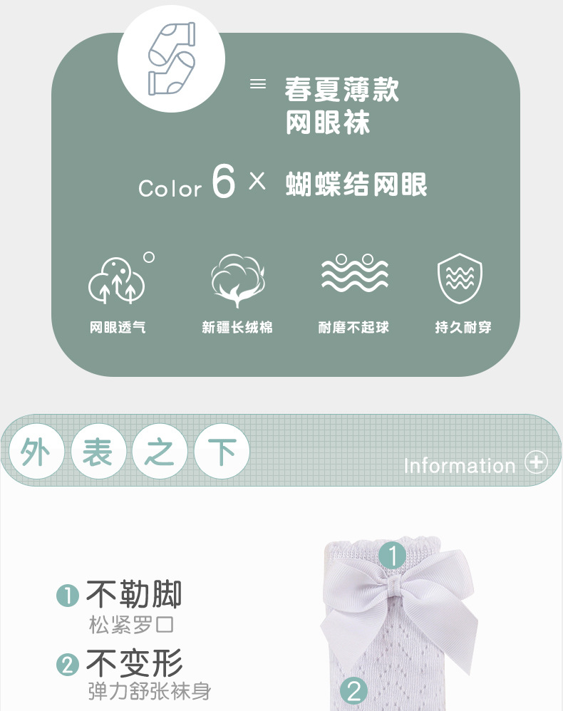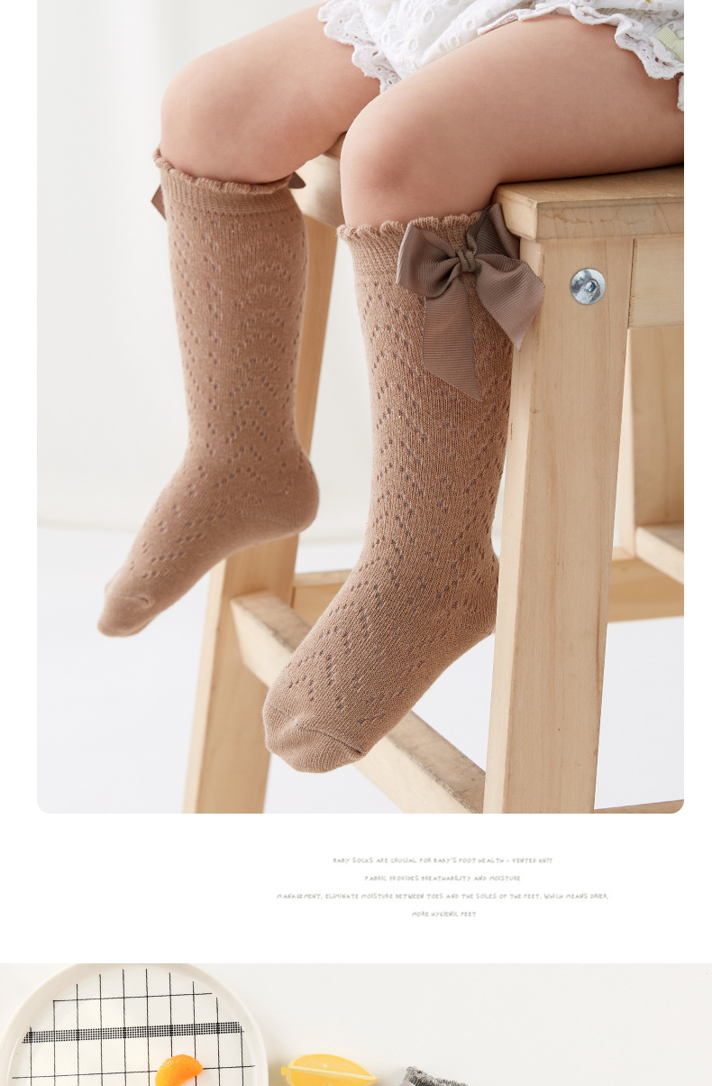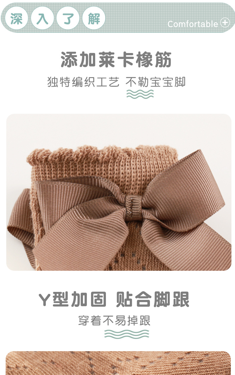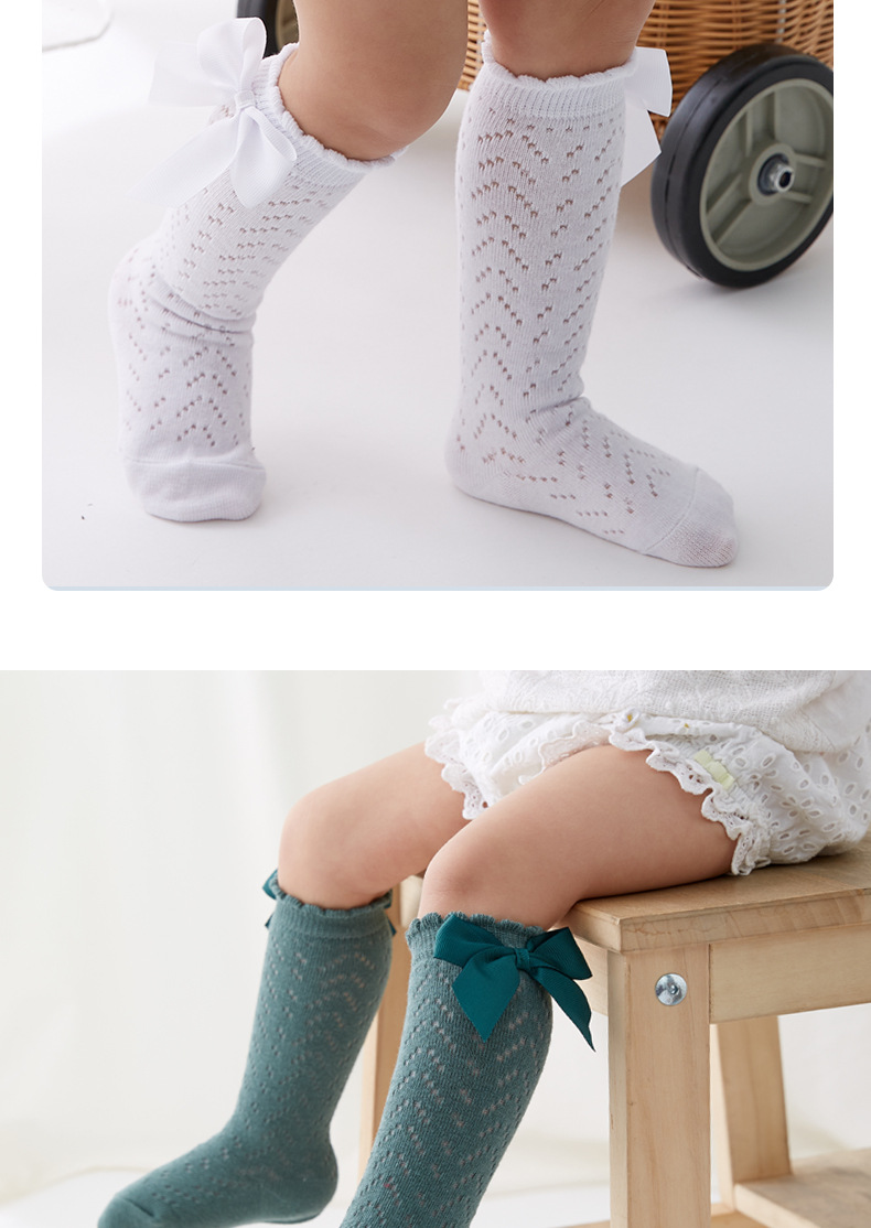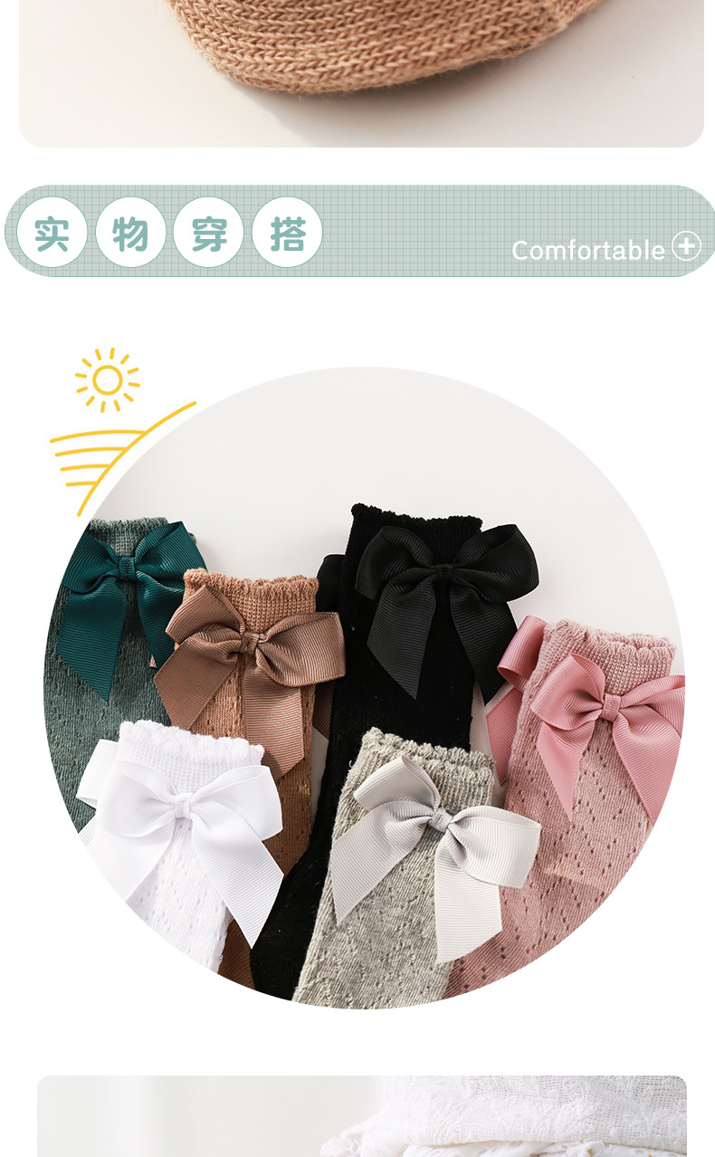 夏季薄款网眼女童袜子蝴蝶结儿童中筒袜公主宝宝婴儿长筒袜西班牙