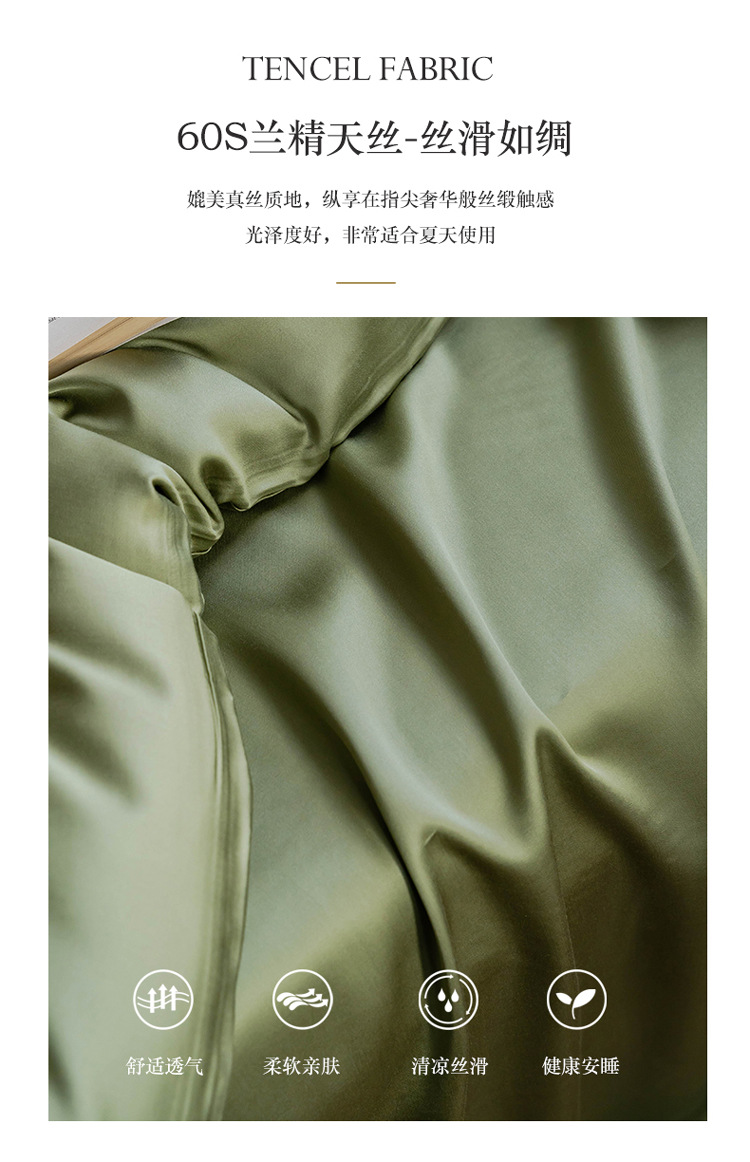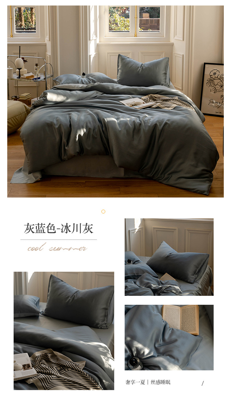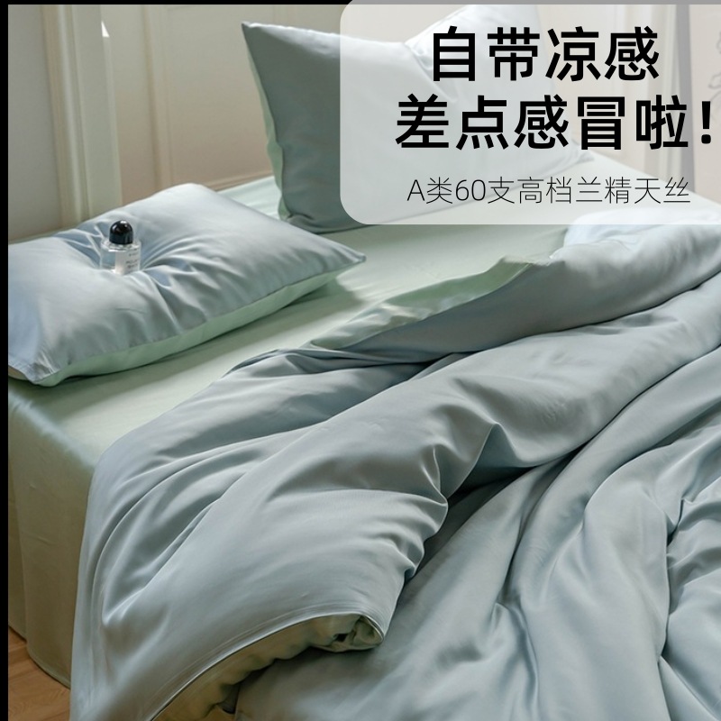 轻奢高级感纯色60s兰精天丝四件套a类冰丝莱赛尔丝滑床单夏季床品