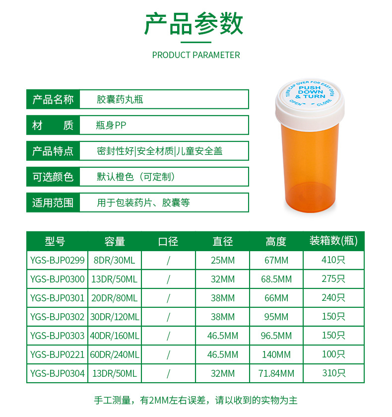 塑料罐批发纯色圆形按压盖胶囊瓶罐20DR80ml儿童药丸小药瓶罐