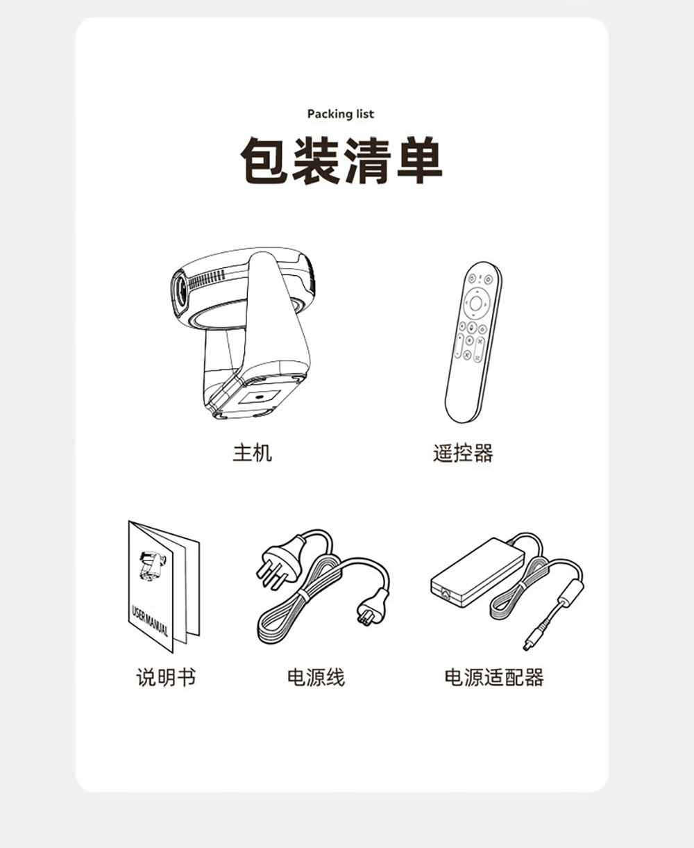 | cast ceiling + built-in battery + ai voice remote control + support 1080p/4k resolution(可投天花板+内置电池+AI语音遥控+支持1080P/4K解析) | USD $115.63 | 9999 piece available |