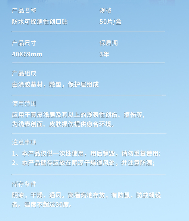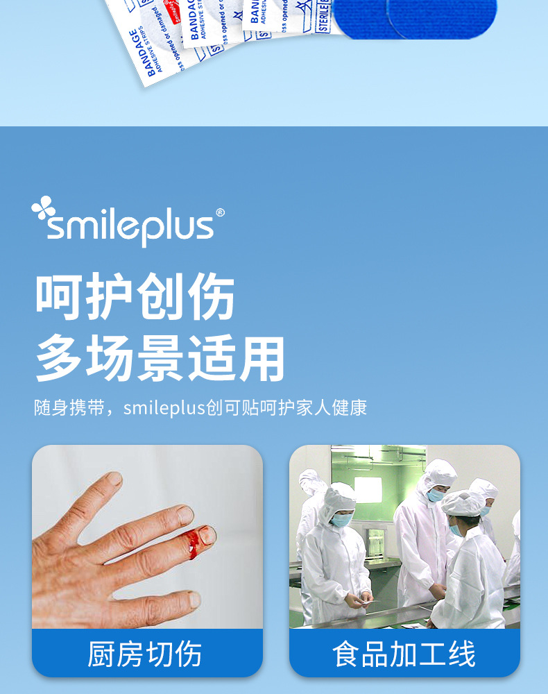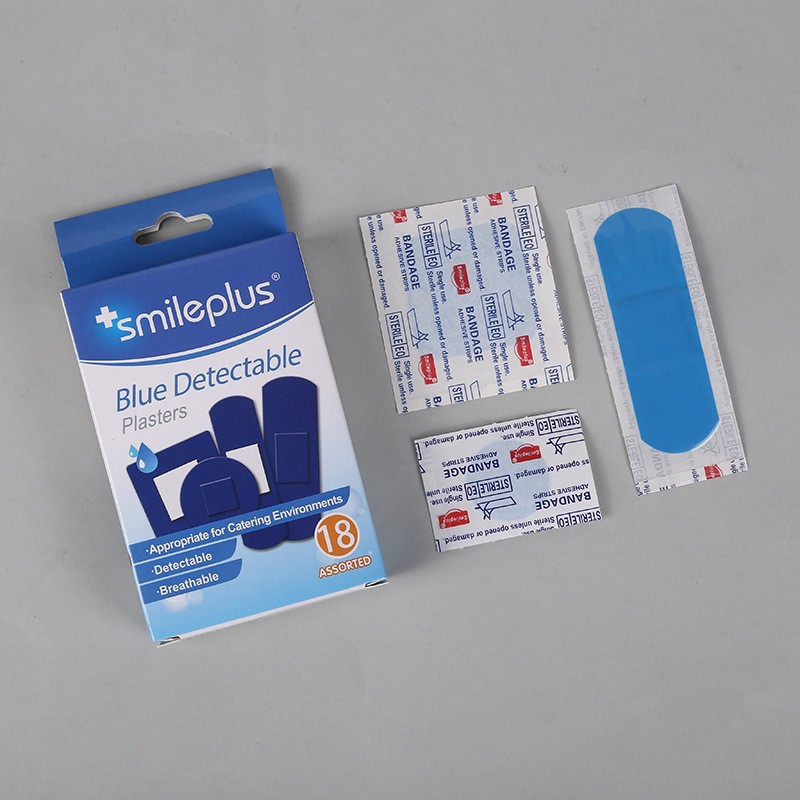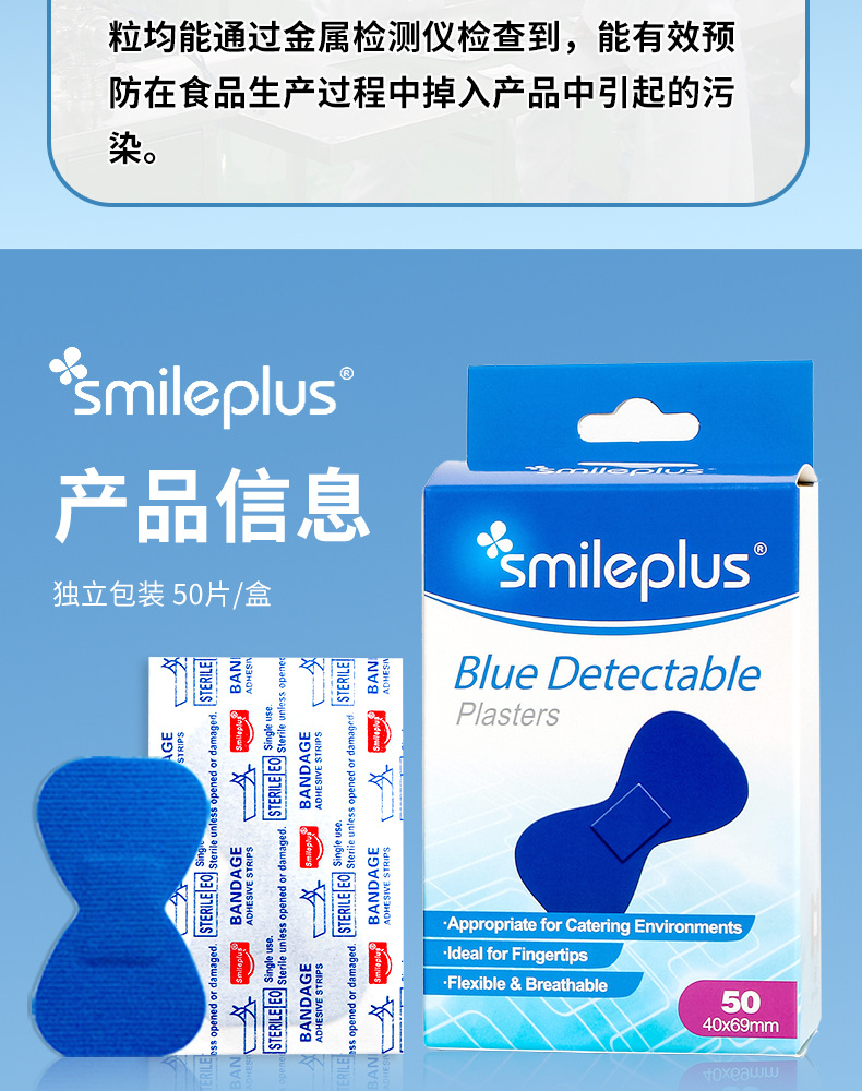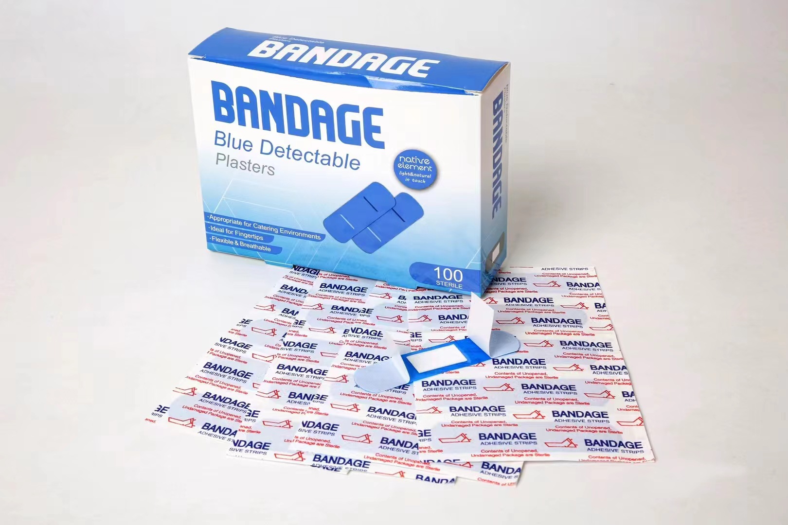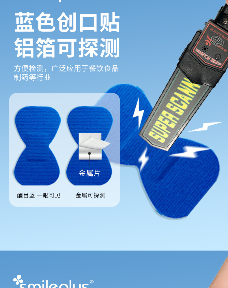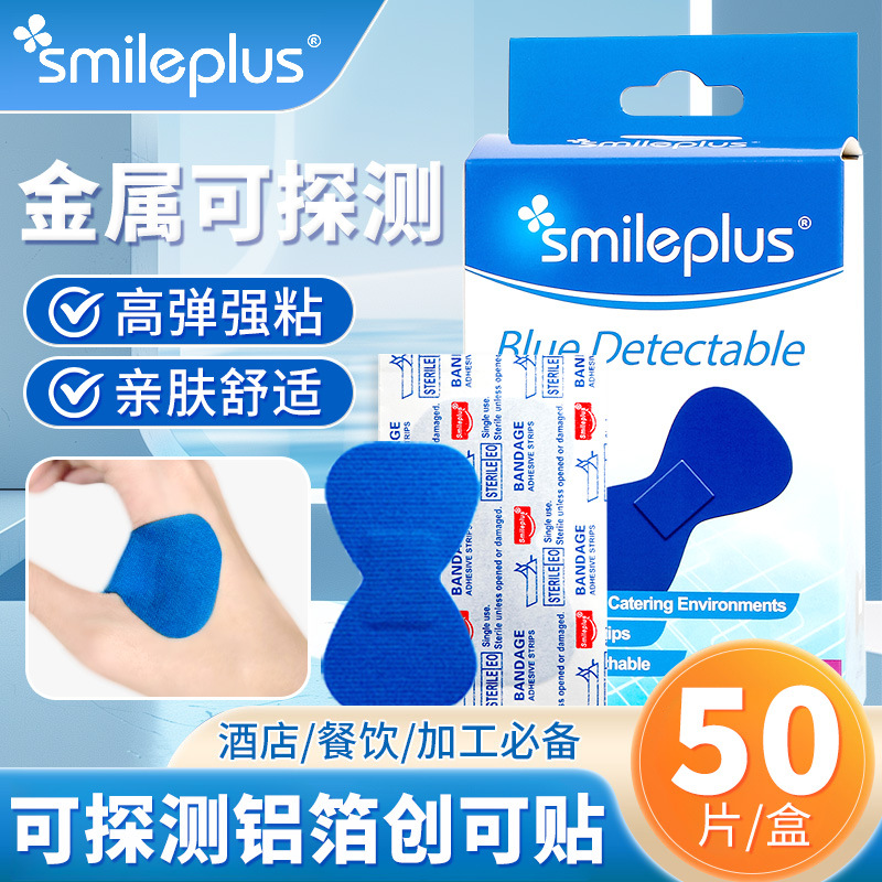 蓝色可探测金属创口贴食品级蝶形大号弹力创可贴医疗耗材