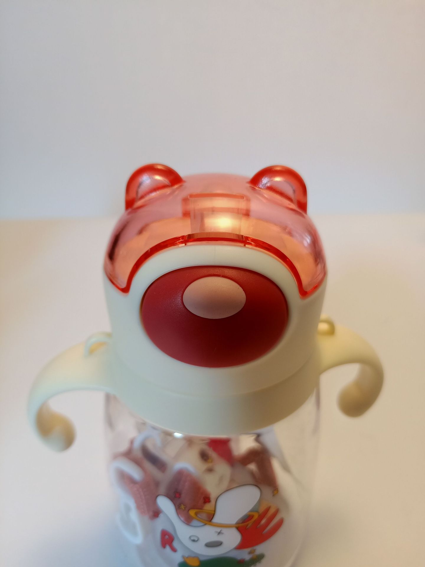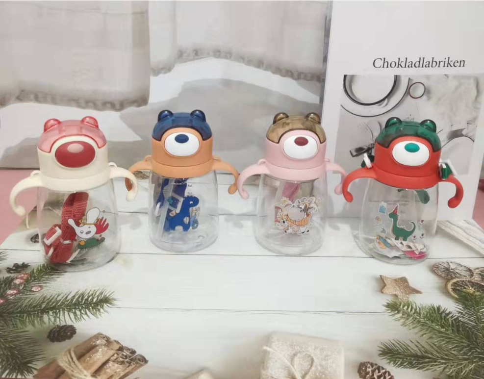 可爱小熊儿童塑料水壶 手柄背带两用学饮杯防呛萌萌厂家现货