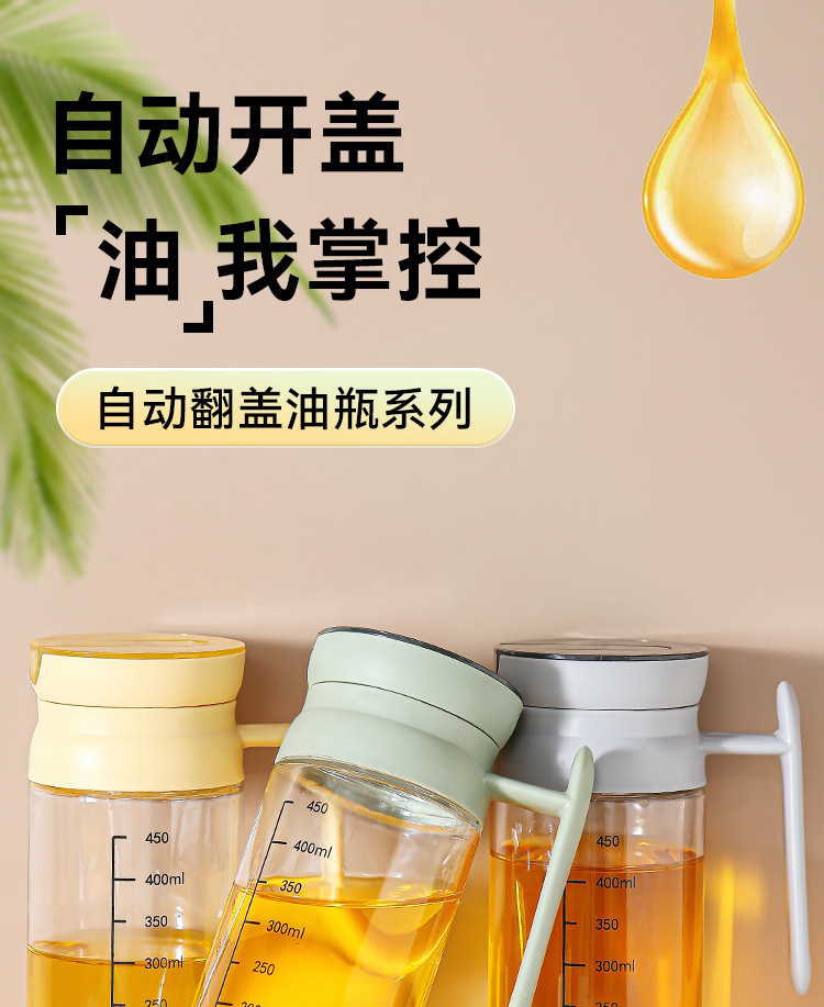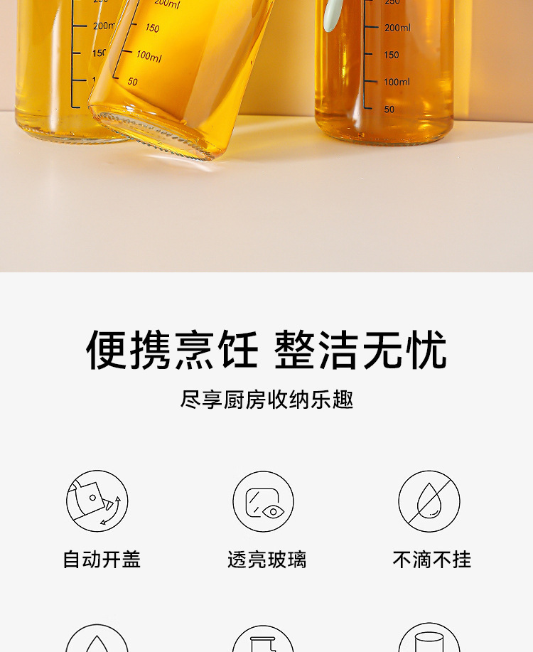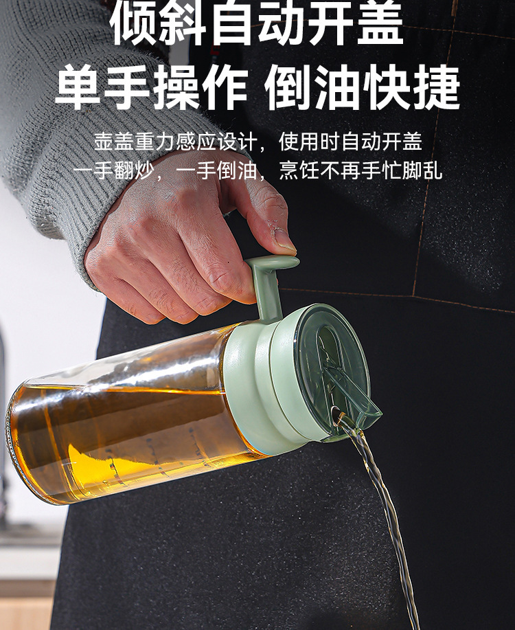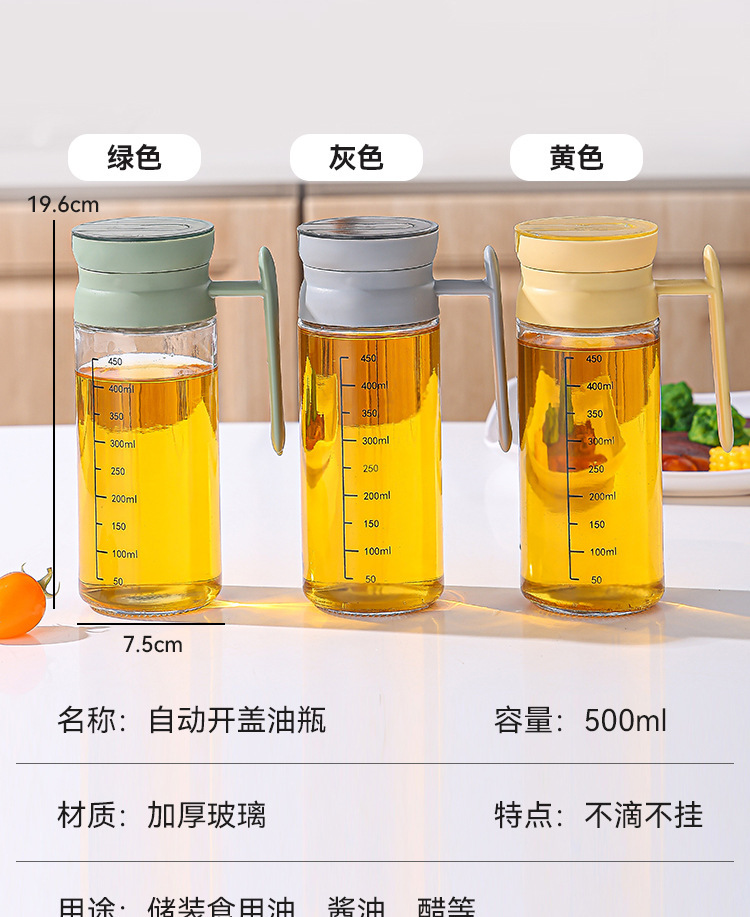 玻璃油壶调味瓶自动开合把手重力开盖不挂油厨房调味瓶酱油调料瓶