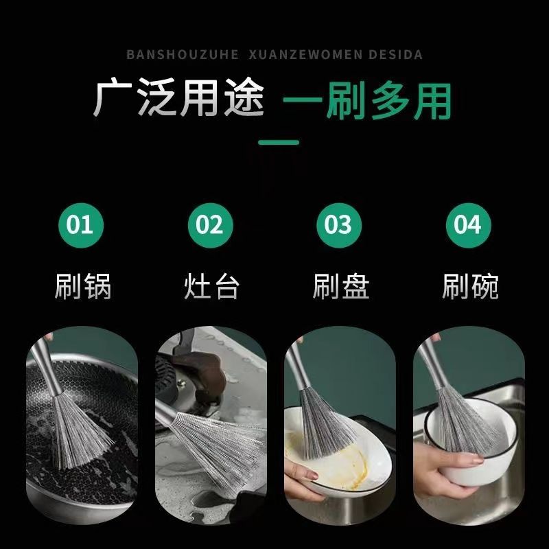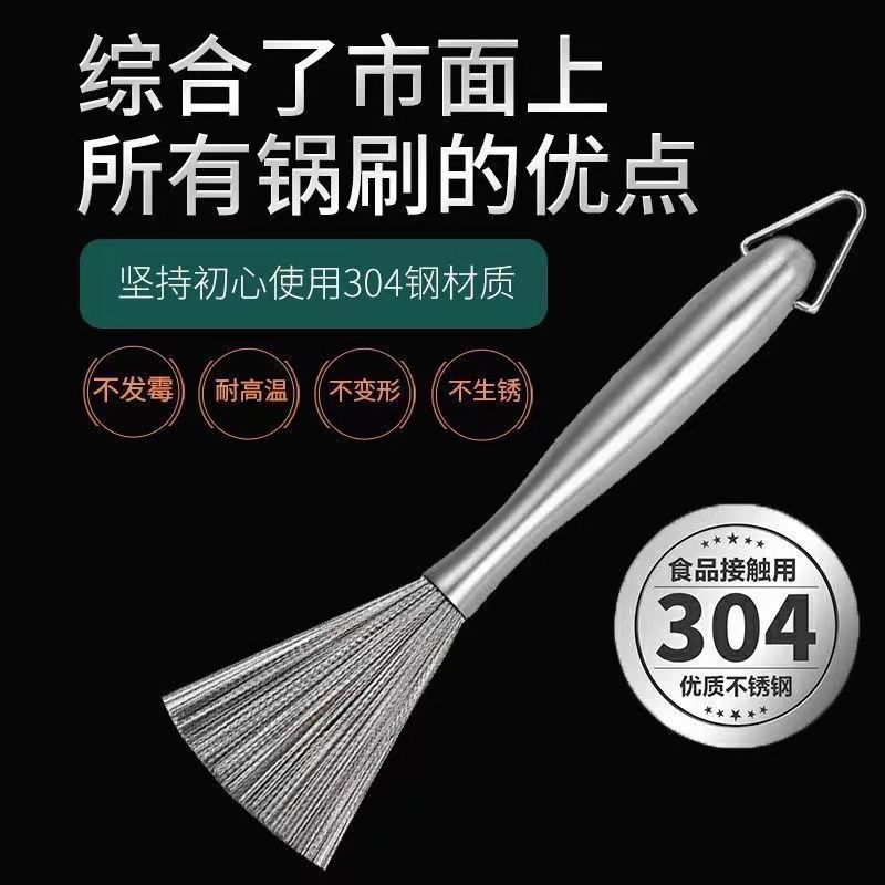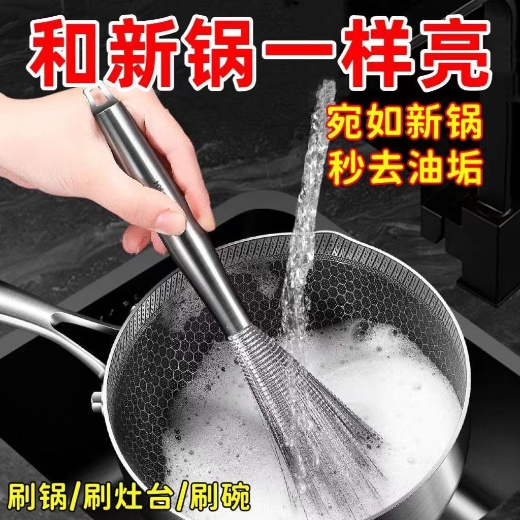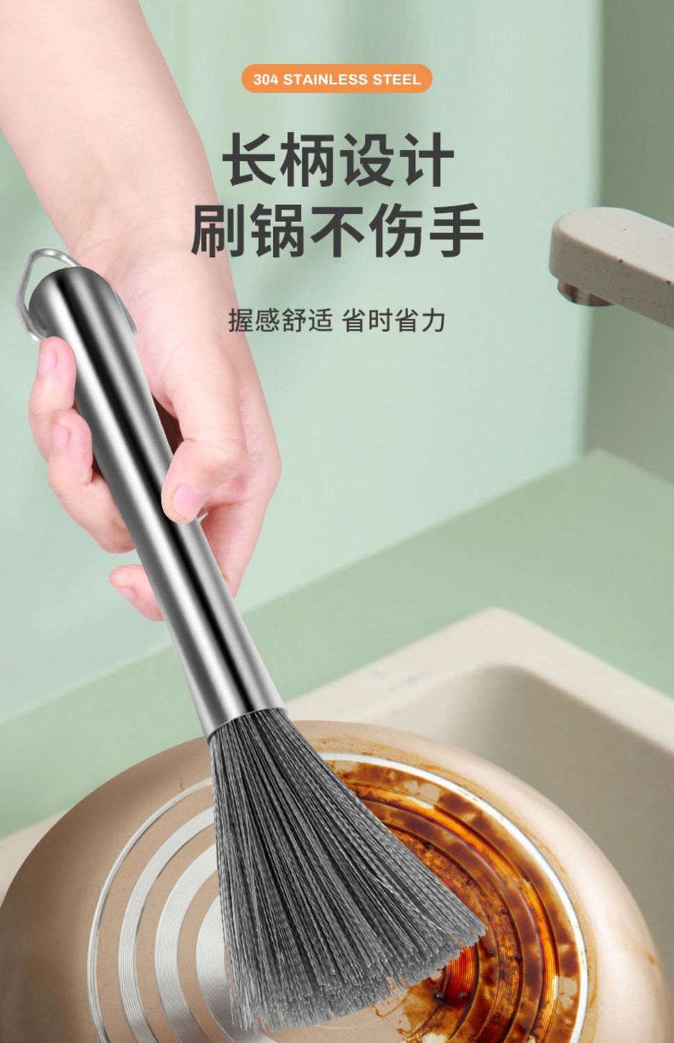 【刷锅神器】不锈钢锅刷28cm长柄德国316长柄清洁刷不绣钢丝洗锅
