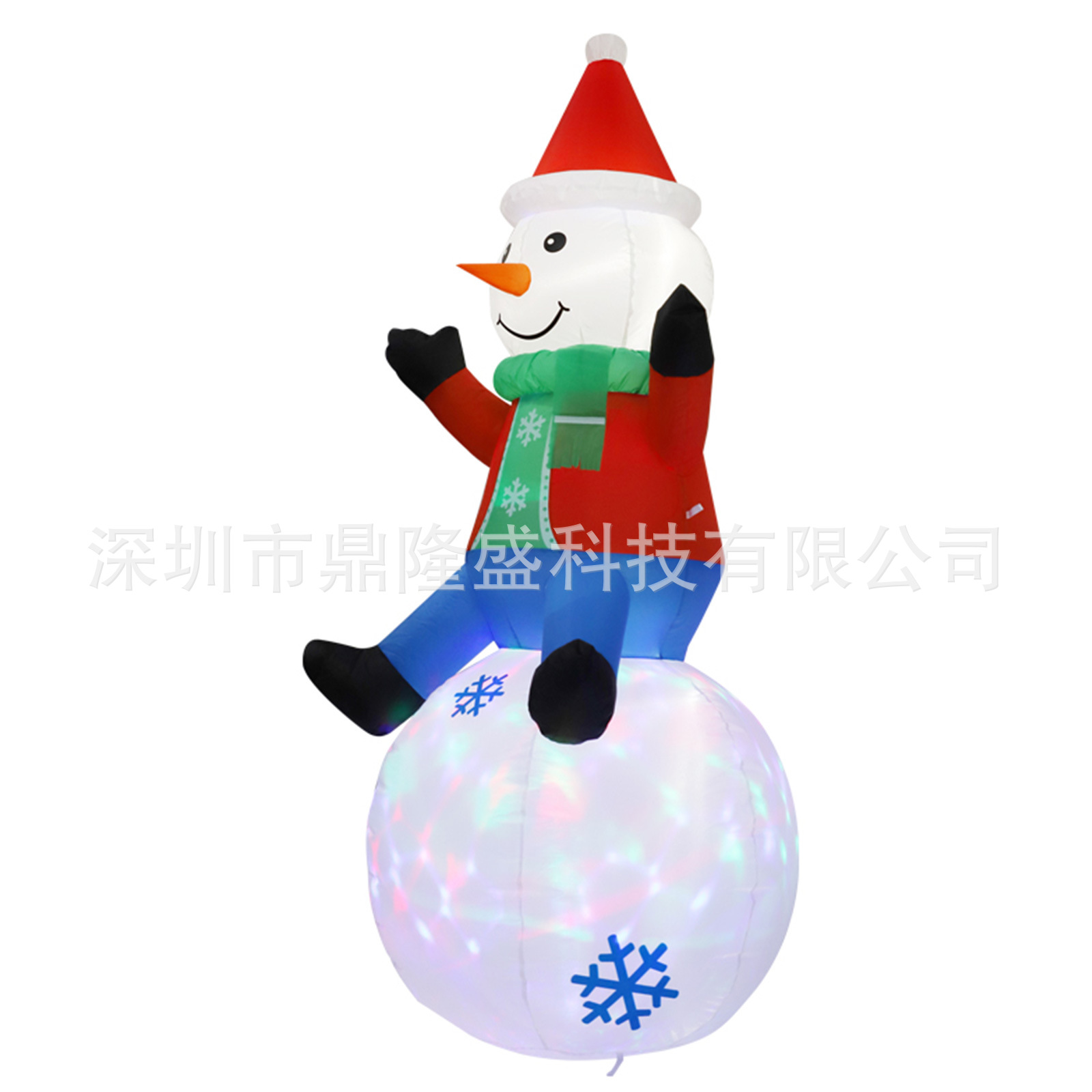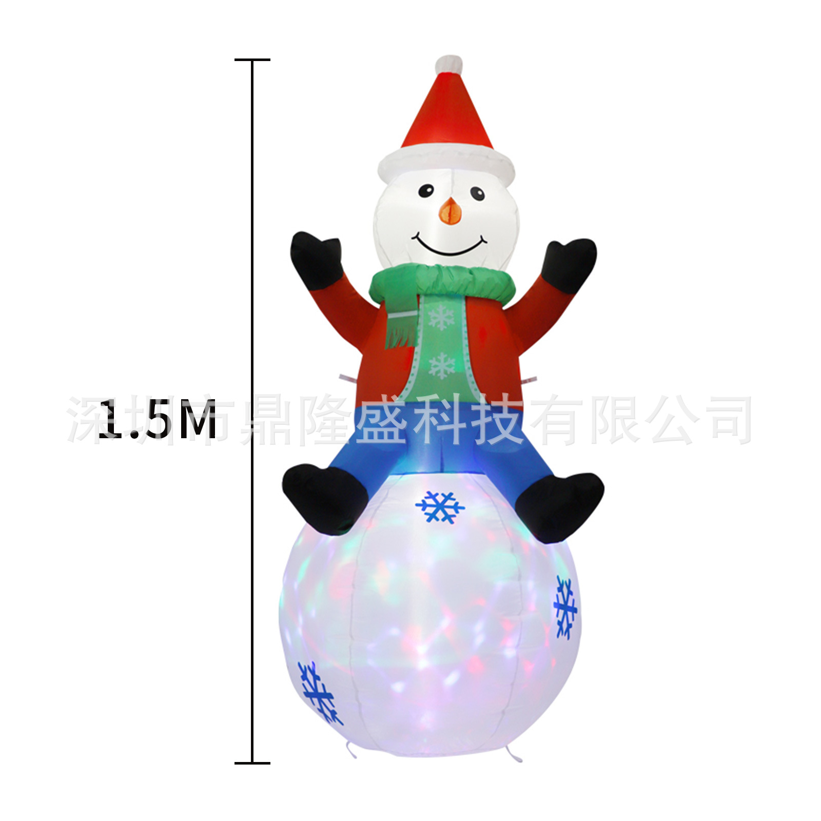 圣诞节充气彩灯雪人气模5FT坐雪球雪人LED发光庭院室内户外装饰品