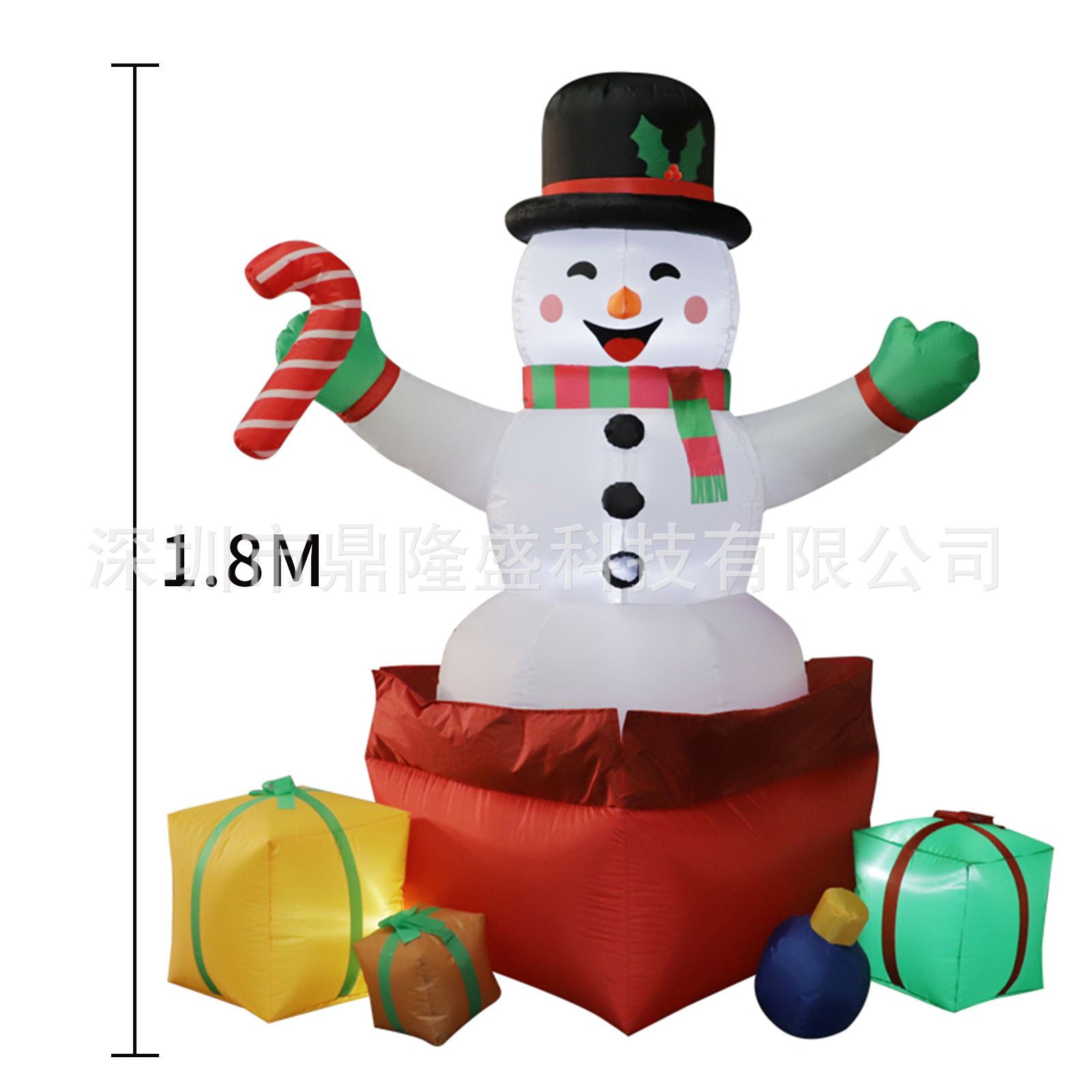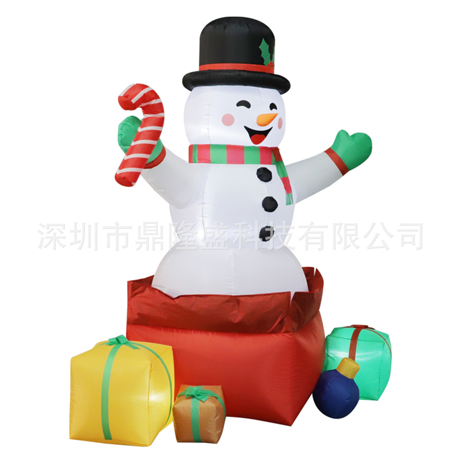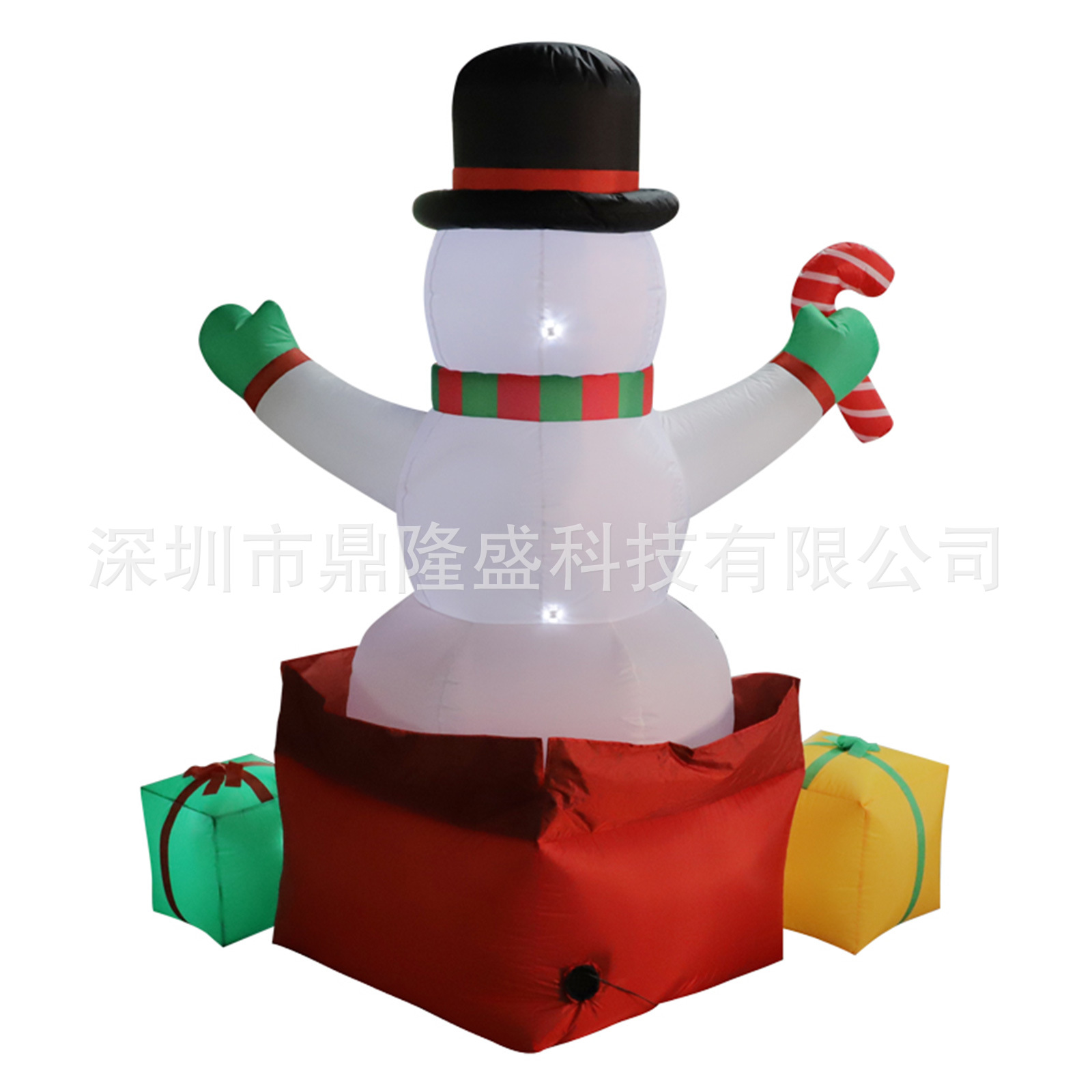 圣诞节充气雪人气模6FT礼盒雪人LED发光庭院室内户外装饰品摆件