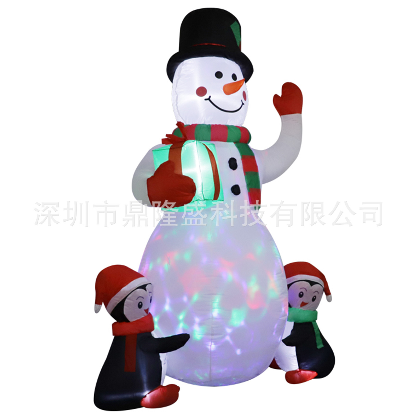 圣诞节充气彩灯雪人气模6FT企鹅抱雪人LED发光庭院室内户外装饰品