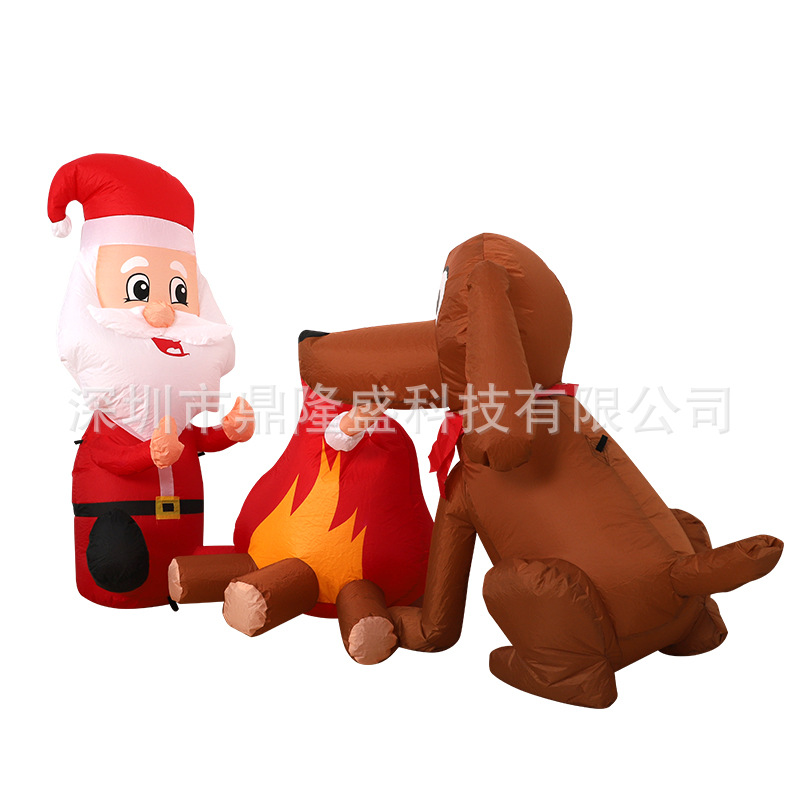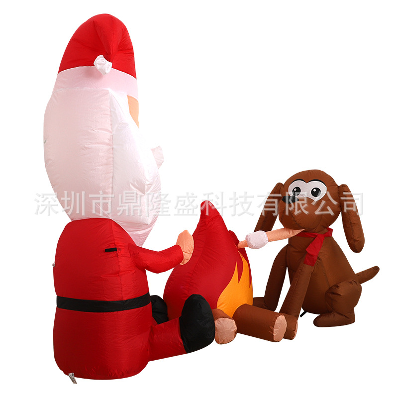 跨境圣诞节气模充气老人小狗烤火发光气模节日道具庭院摆件装饰品