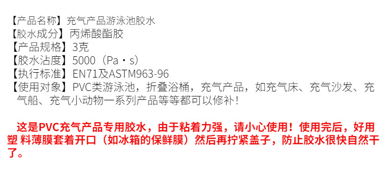 胶水+修补片 充气产品专用胶水游泳圈PVC胶水充气玩具修补包