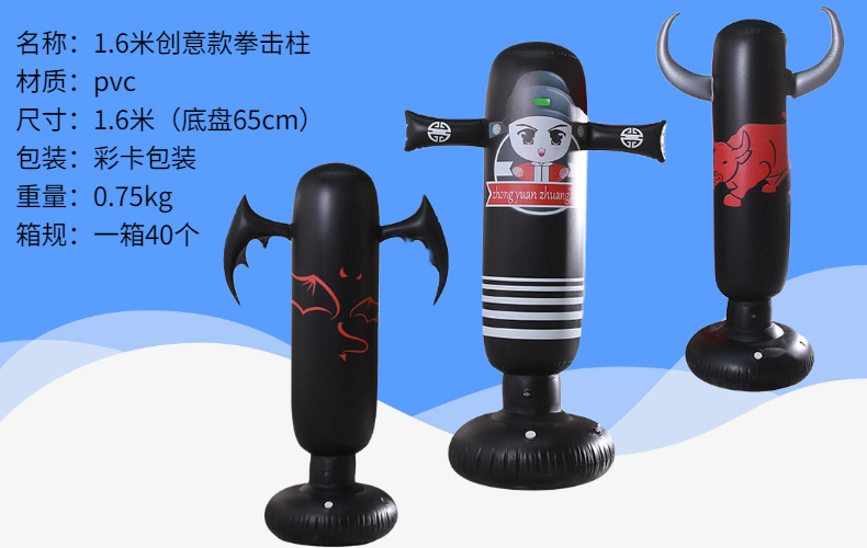 跨境 充气打击柱拳击柱健身儿童pvc加厚不倒翁立体宣泄沙袋厂家