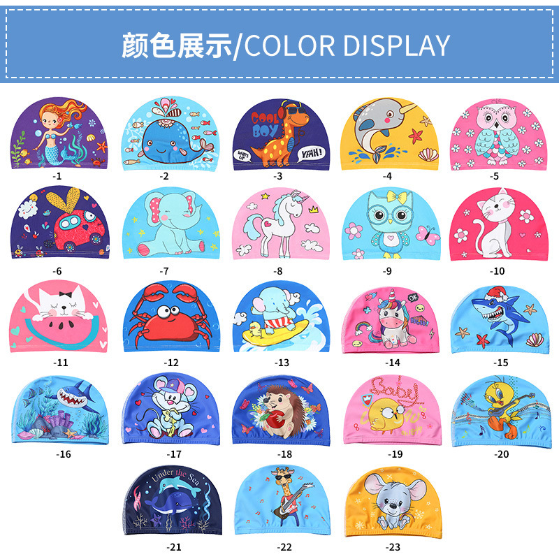 儿童泳帽可爱卡通印花图案男童女童游泳帽宝宝舒适印花游泳帽批发