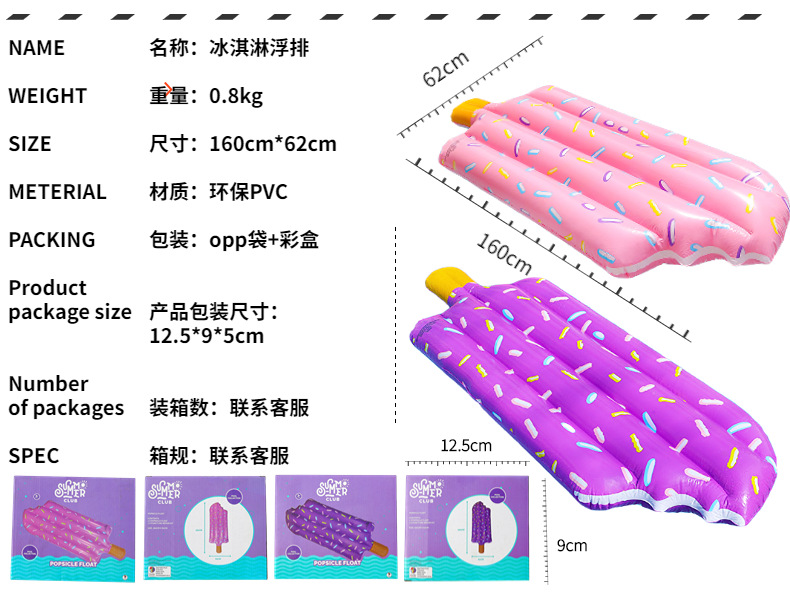 跨境 工厂直供 ins热卖 充气雪糕浮排 冰棒浮床冰激凌浮排水上坐