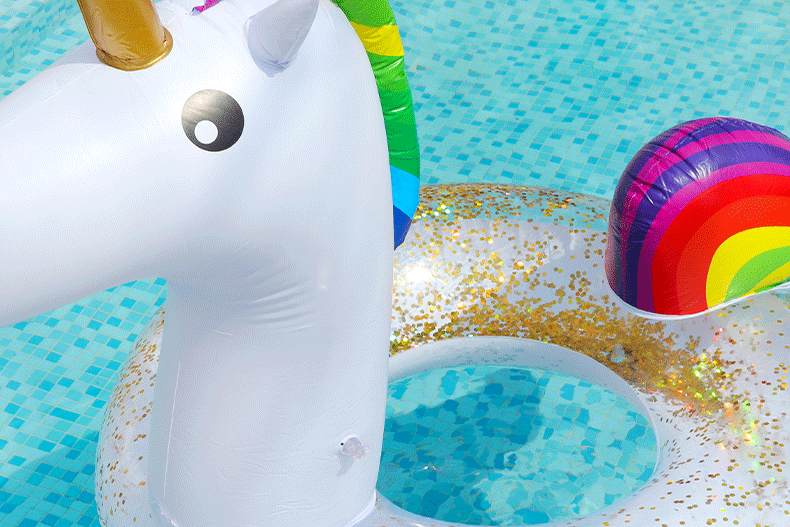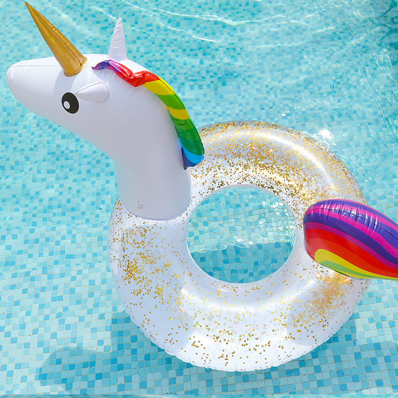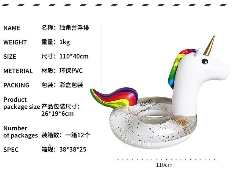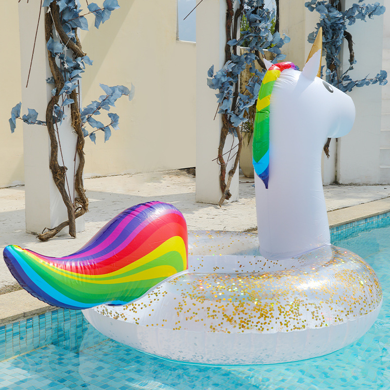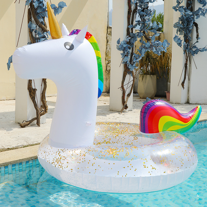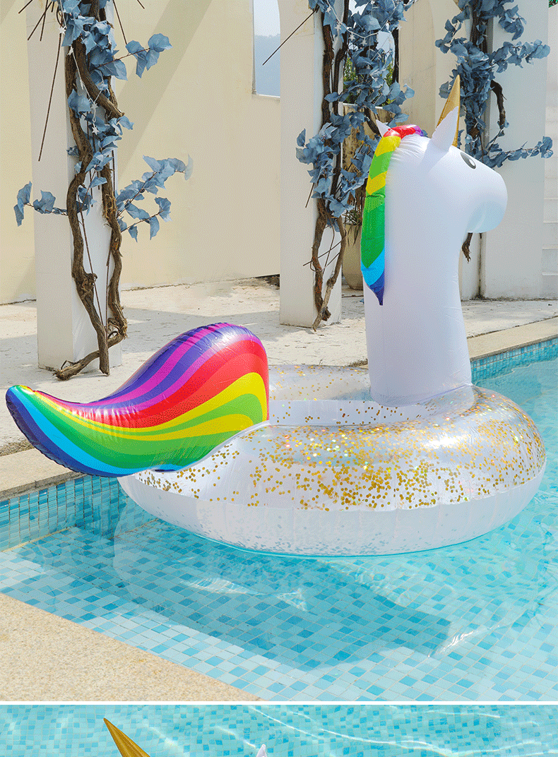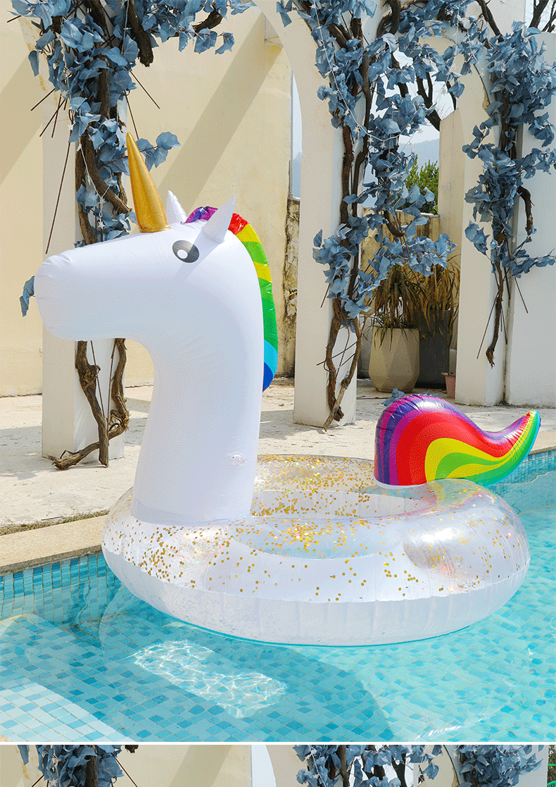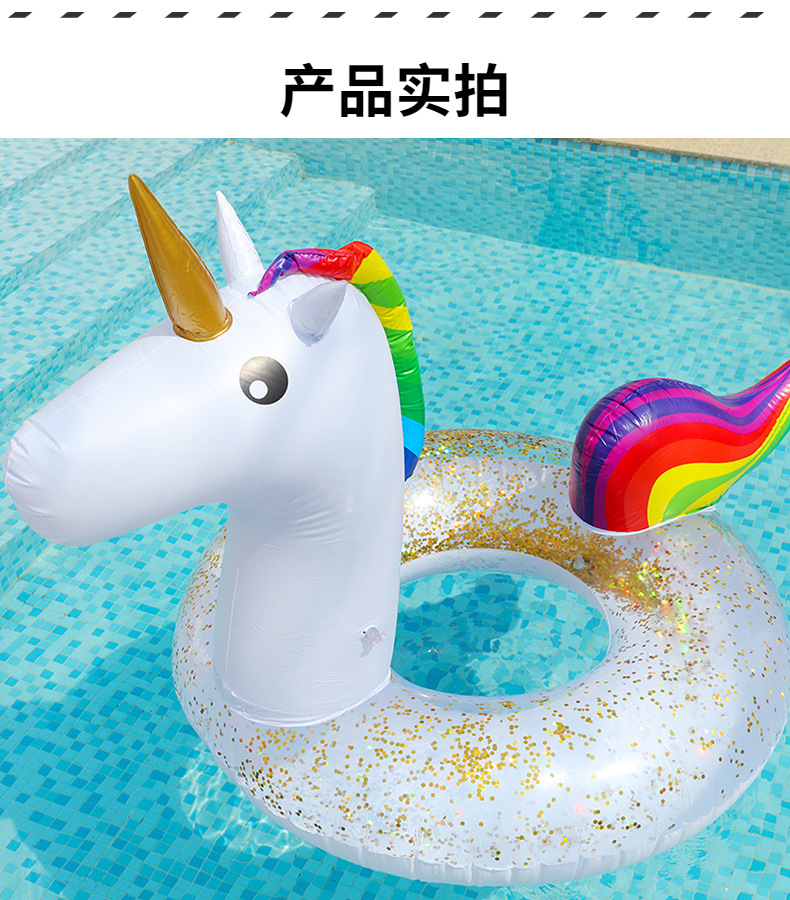 跨境 批发独角兽泳圈加厚PVC成人游泳圈水上娱乐充气独角兽浮排