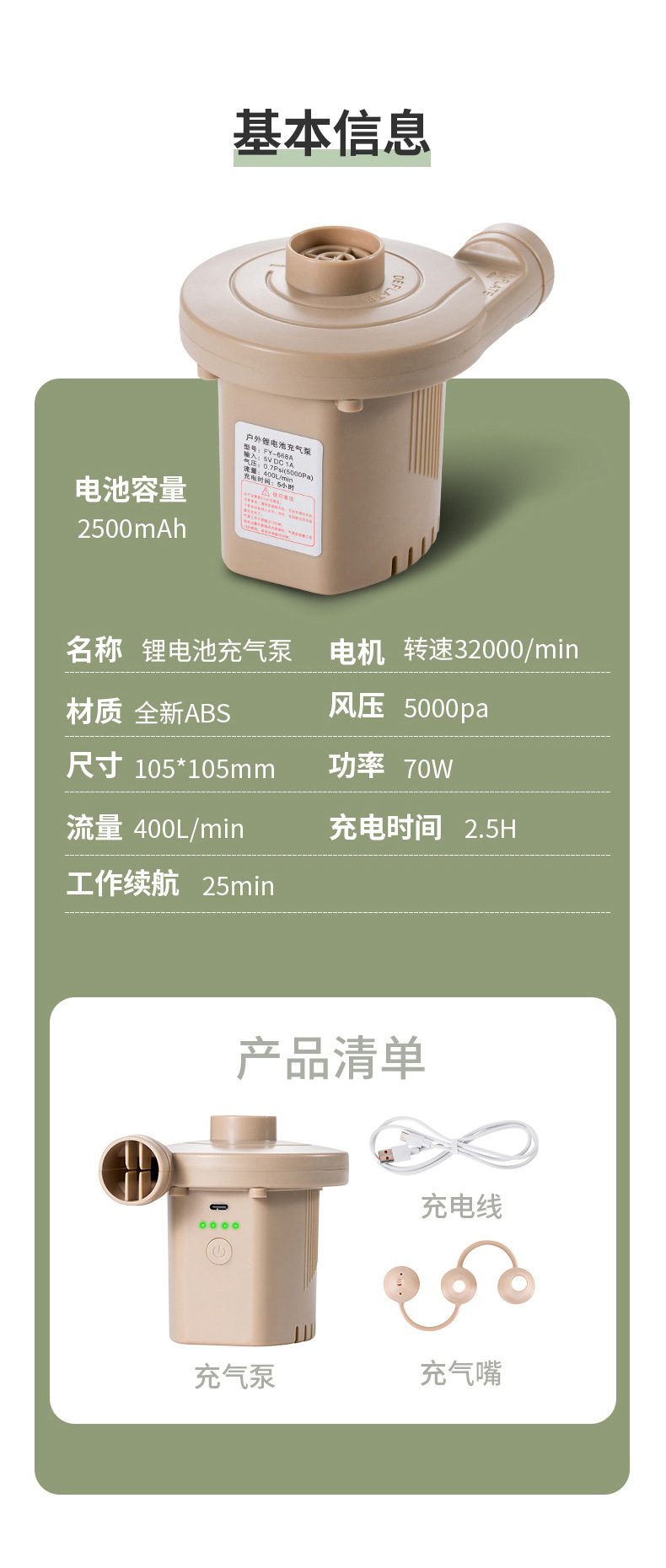 锂电池无线充气电泵蓄电池车床用泵户外便携打气泵车载充气床配件