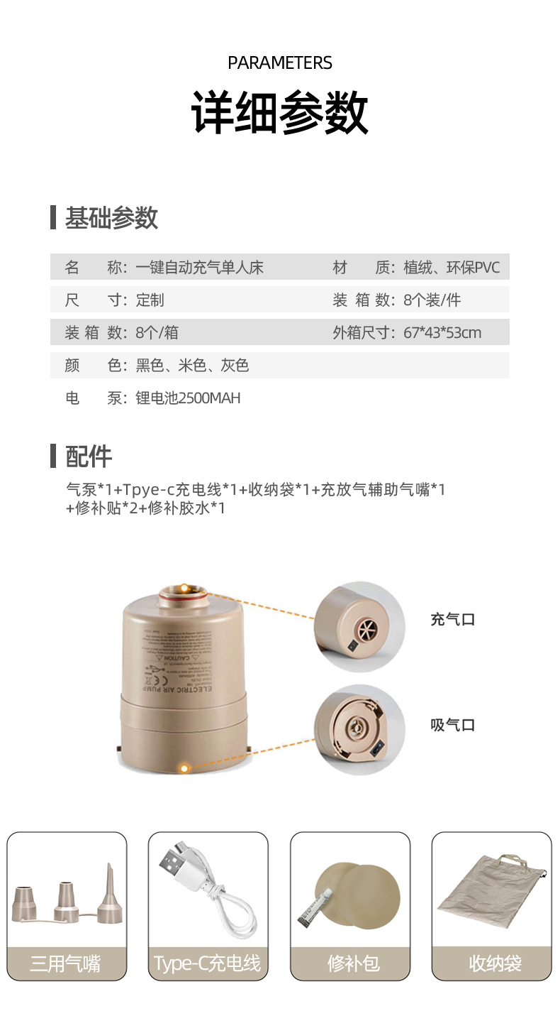 | one-click automatic airbed (including accessories)(一键自动充气床(含配件)) | USD $41.02 | 14278 set available |