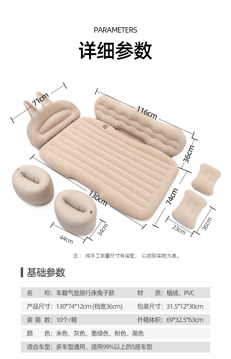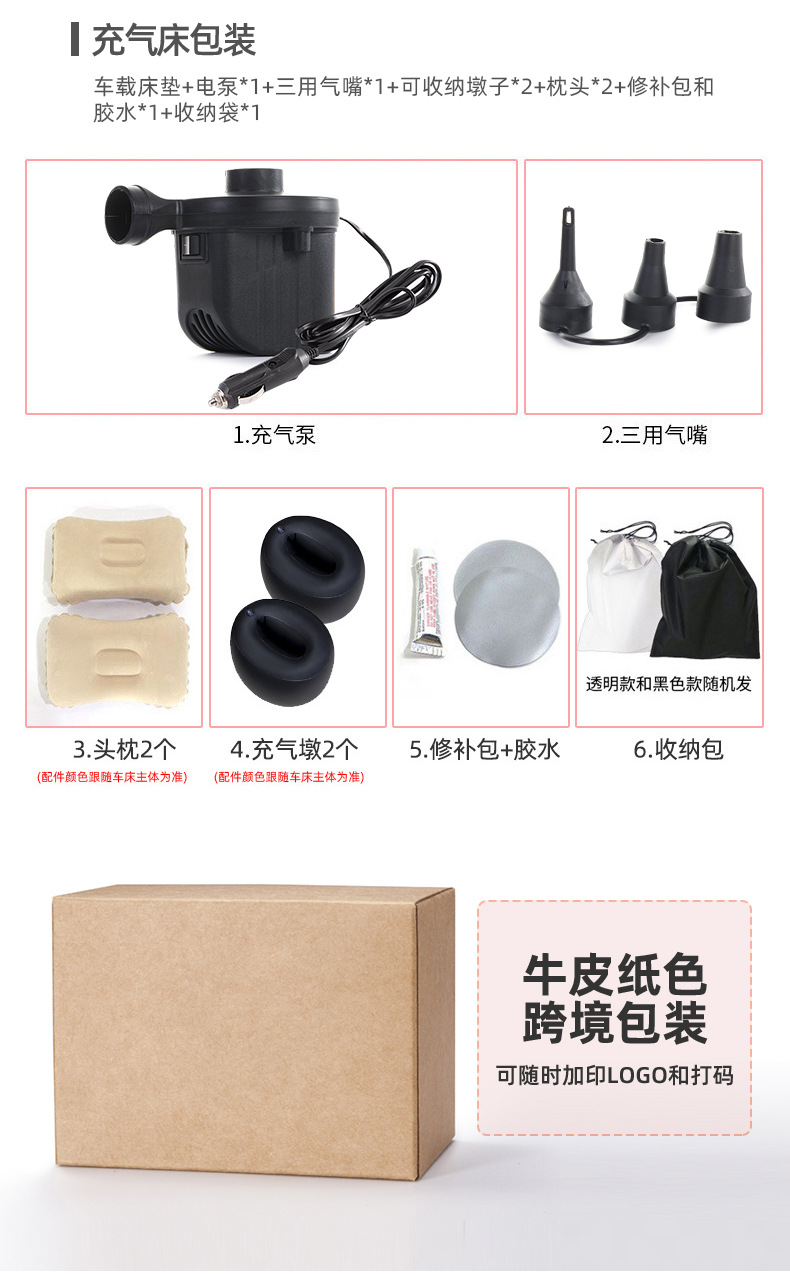 工厂跨境汽车充气床外出旅行车载充气床便携折叠车载后排睡垫批发