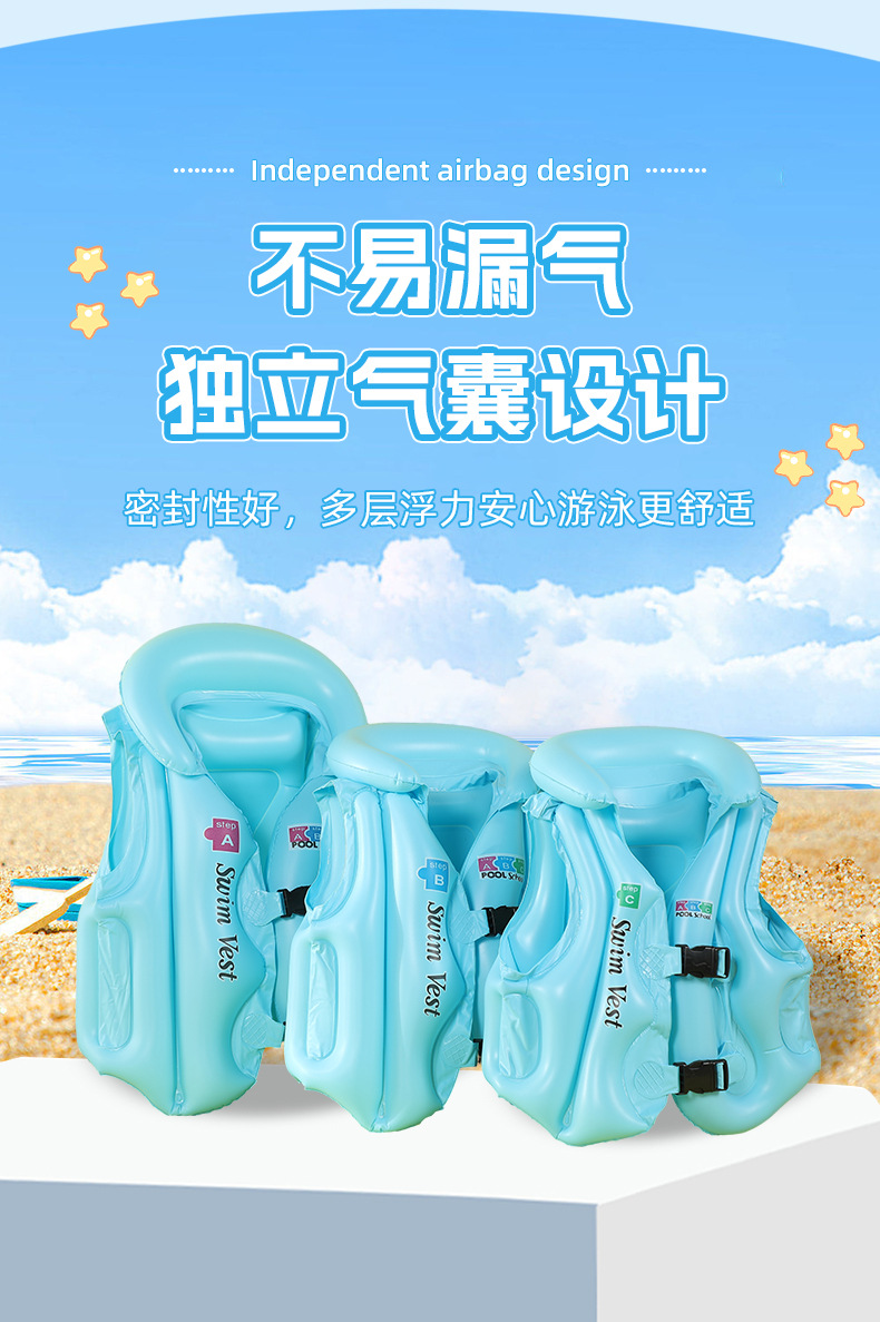 跨境儿童救生衣漂流背心卡通充气马甲泳衣宝宝游泳装备浮力衣