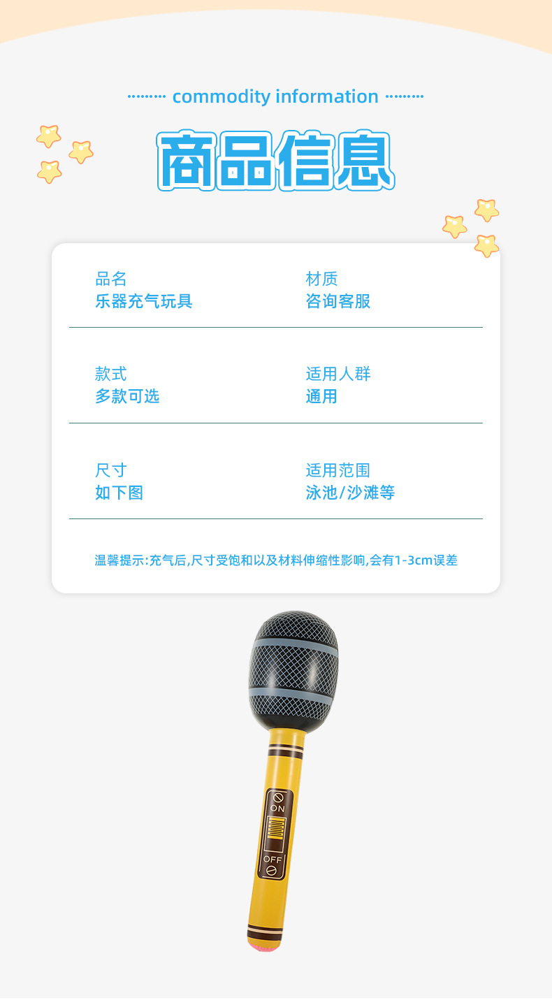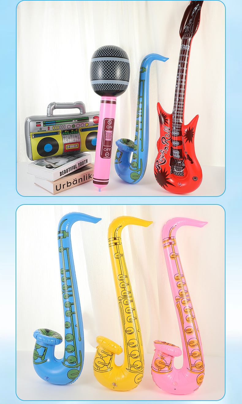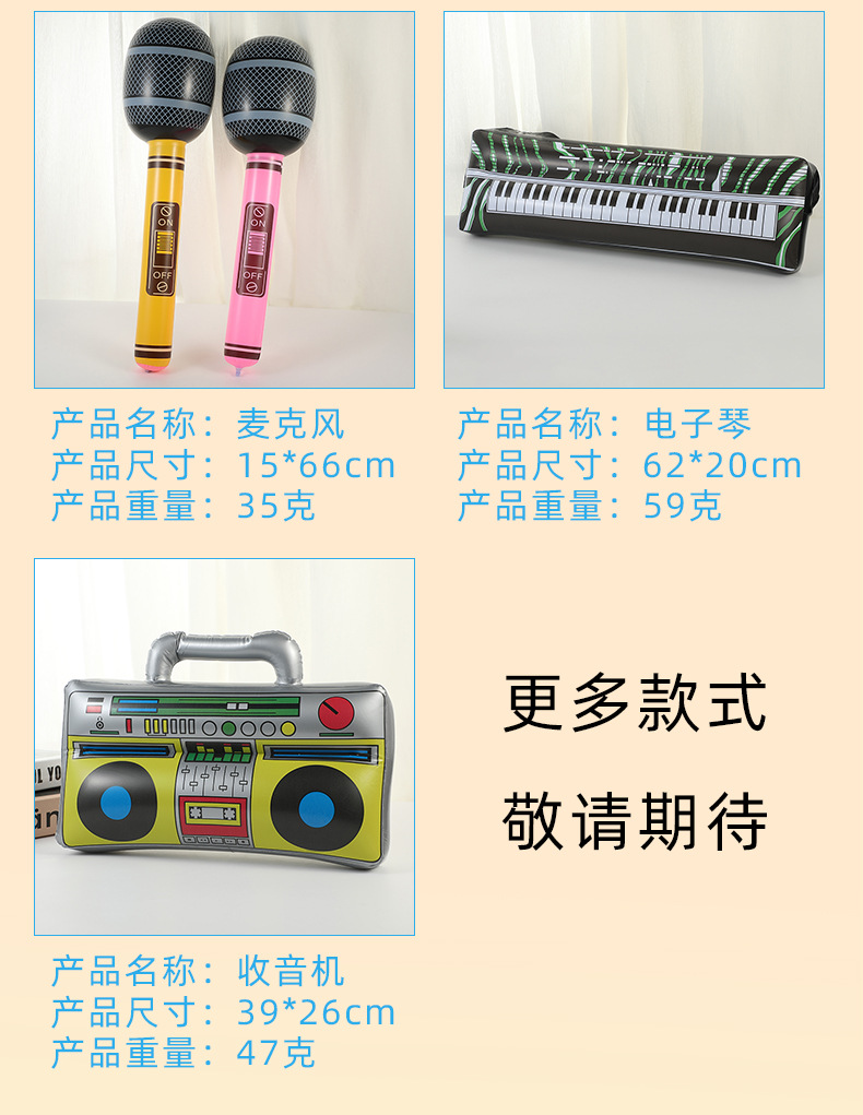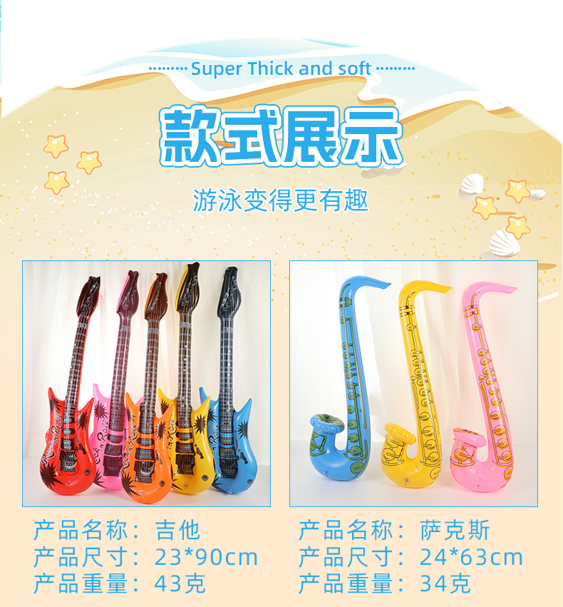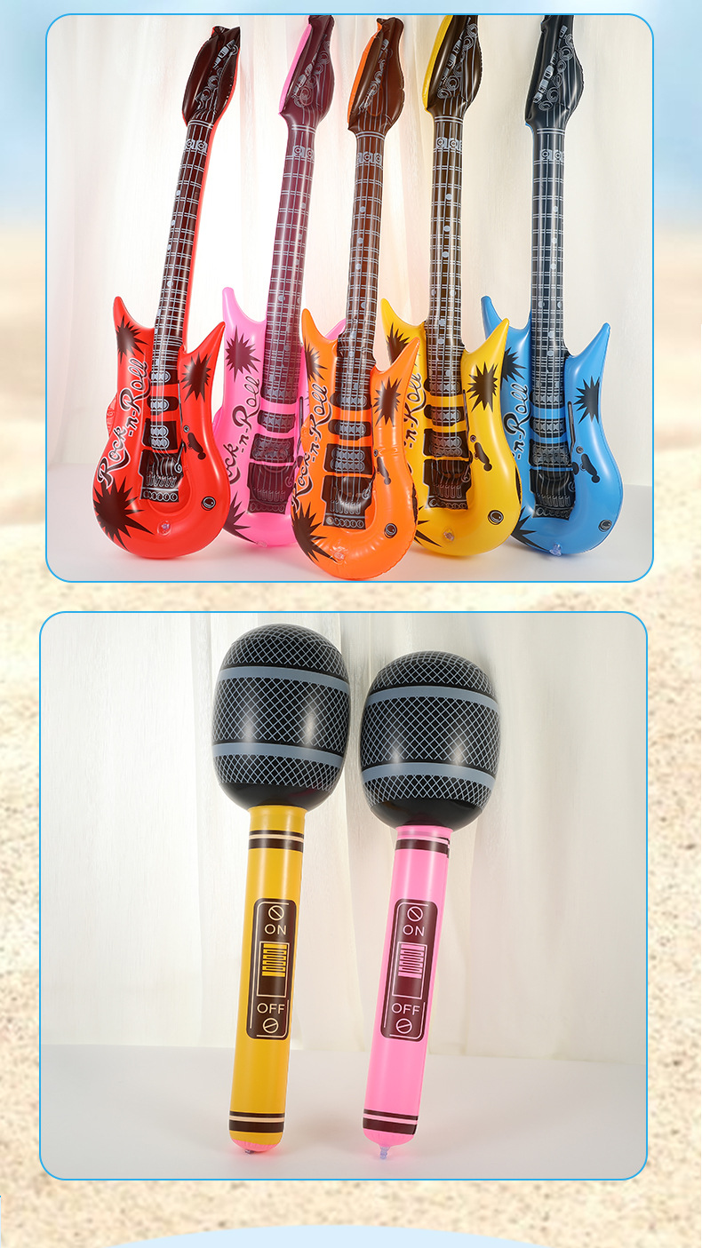 新款创意仿真充气乐器玩具音乐派对k歌吉他麦克儿童充气玩具批发