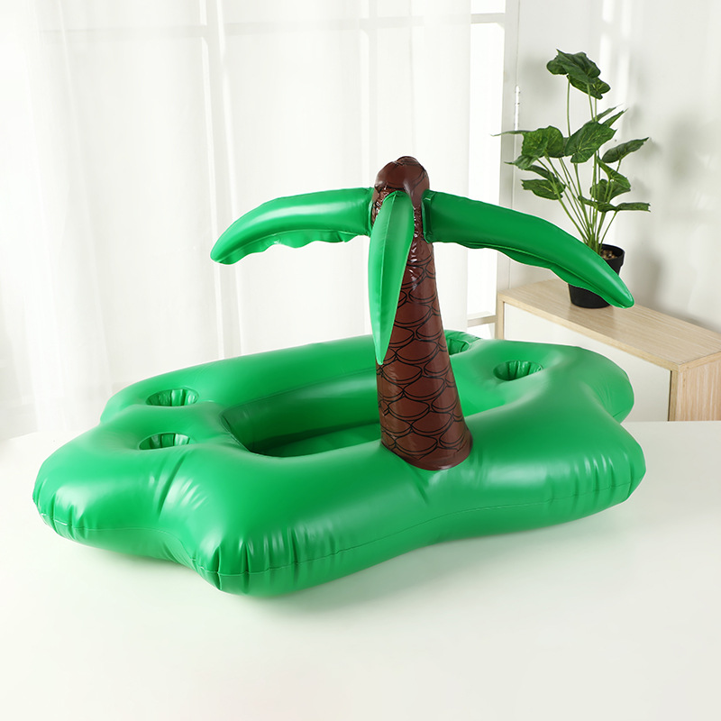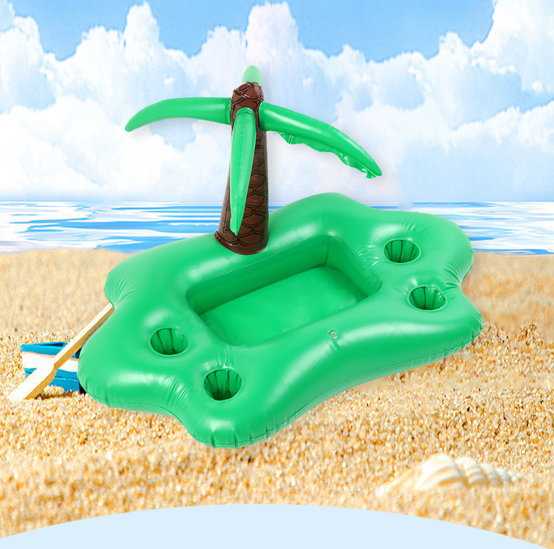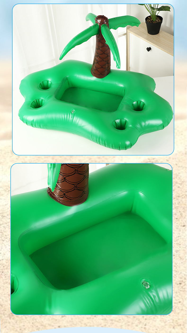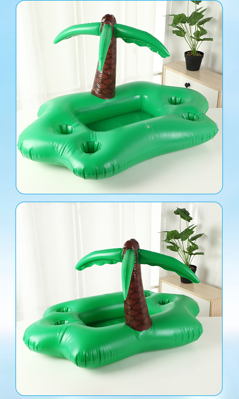 4洞PVC充气夏日椰林主题杯座水上椰树饮料杯托盘蘑菇杯垫批发