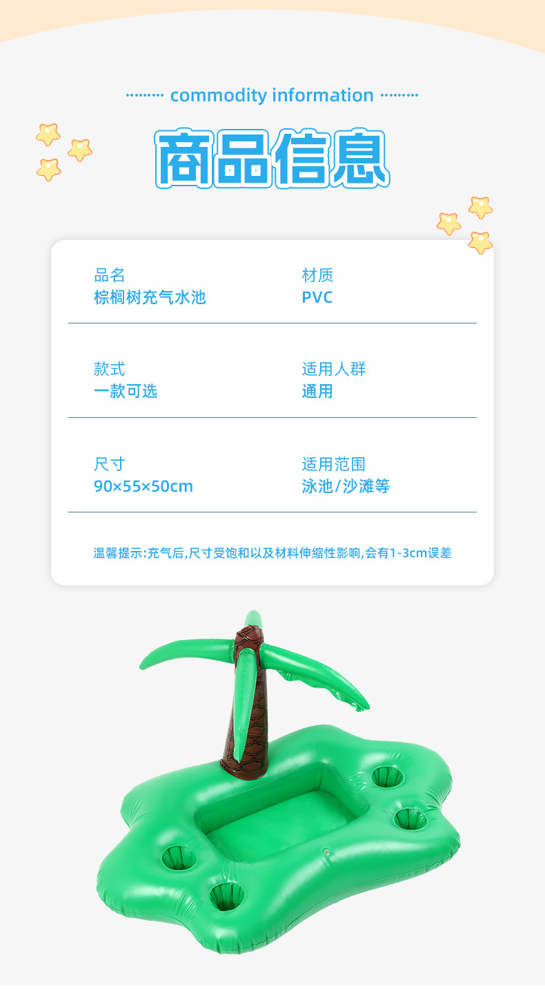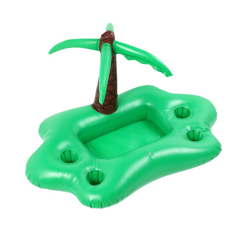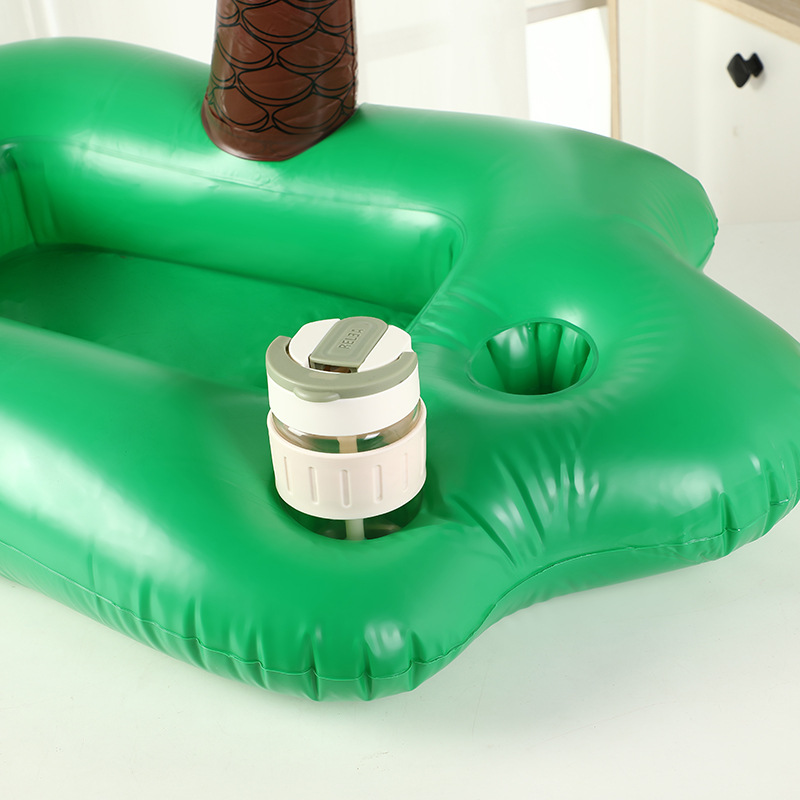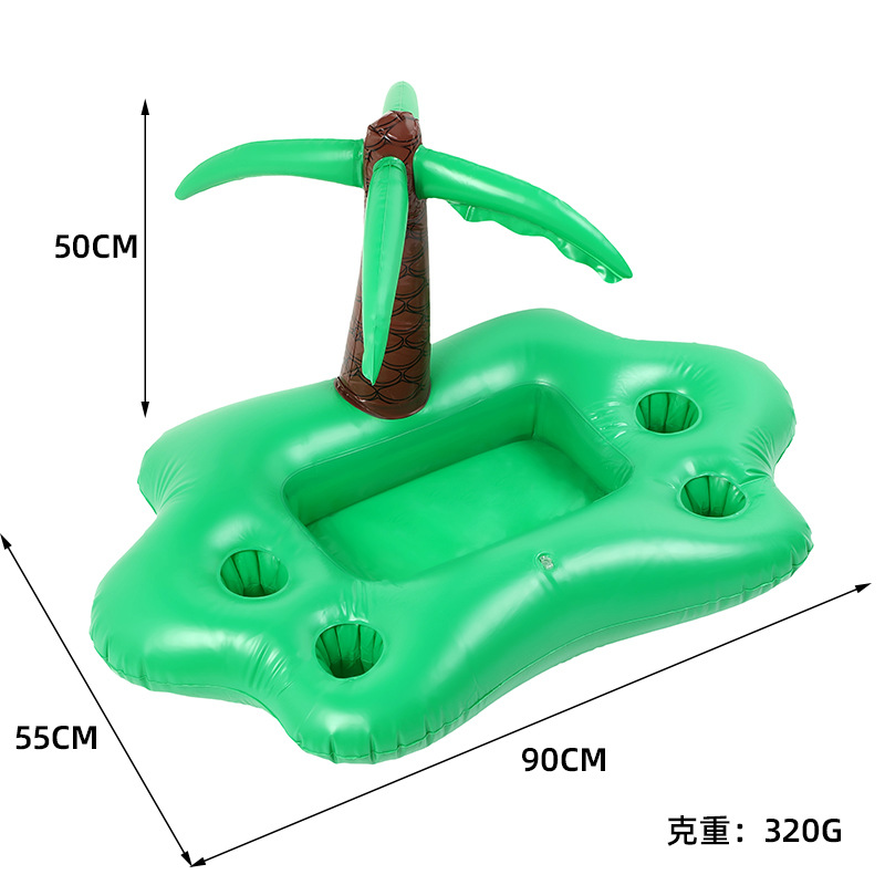 4洞PVC充气夏日椰林主题杯座水上椰树饮料杯托盘蘑菇杯垫批发