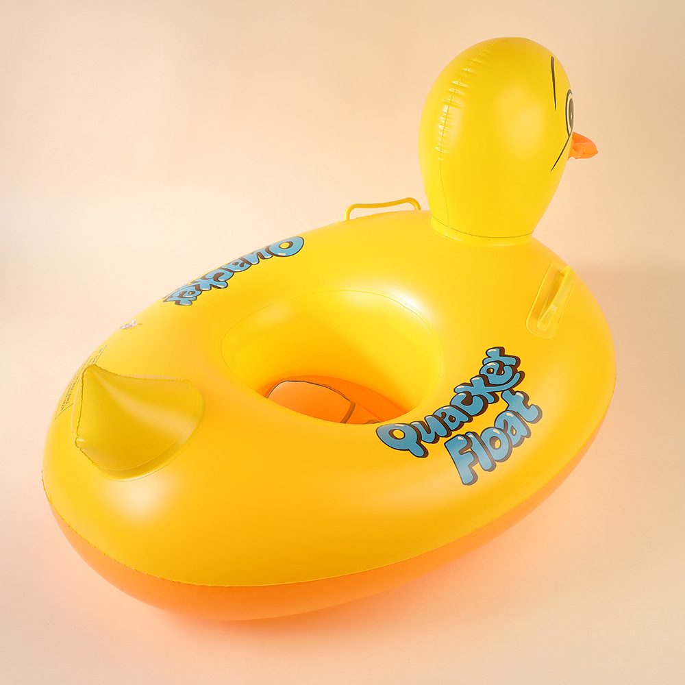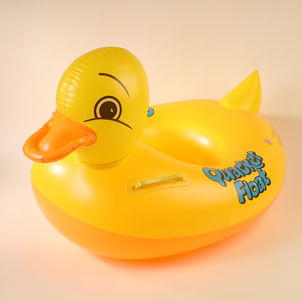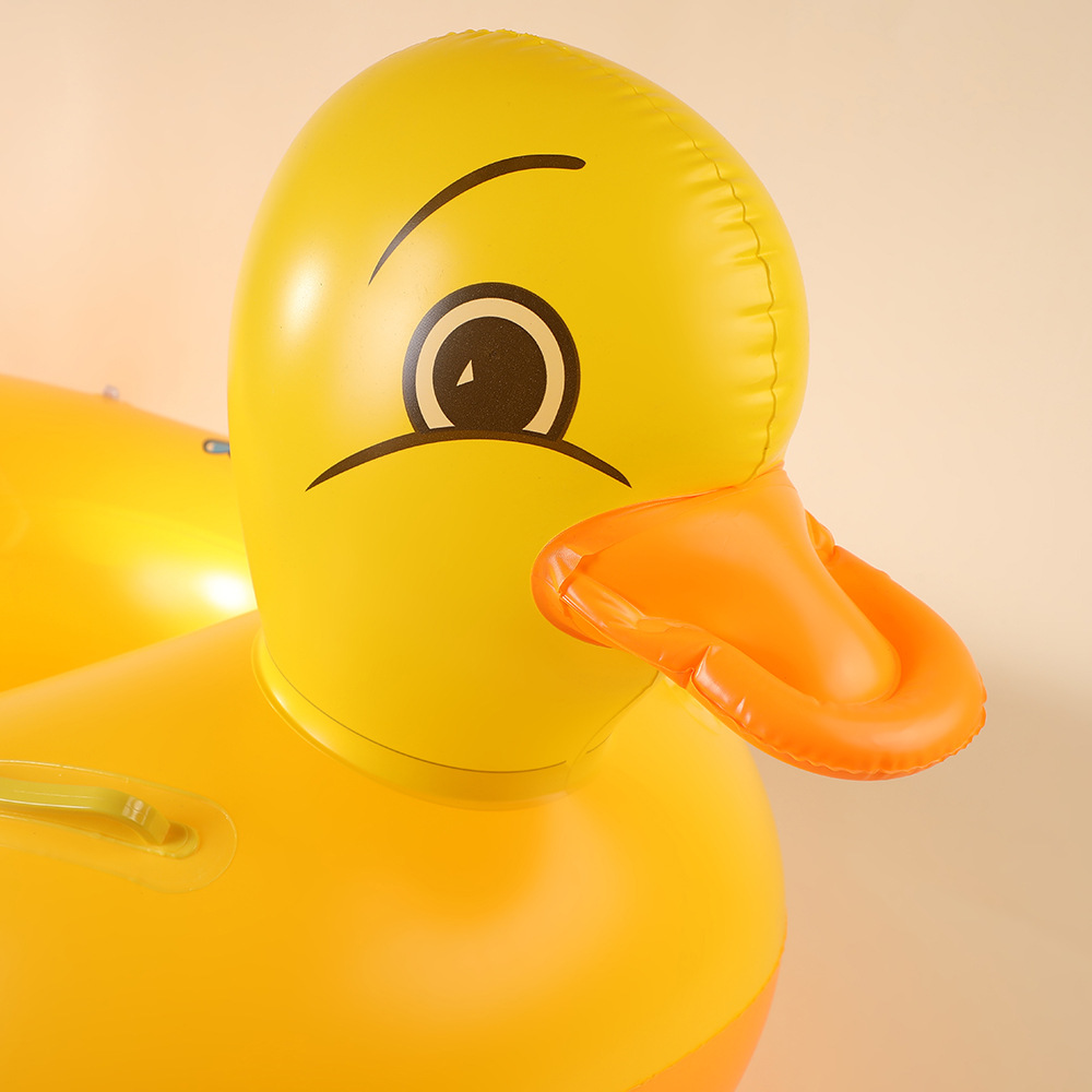 新款水上玩具新款PVC充气泳池水上玩具卡通带把手黄鸭艇游泳坐骑