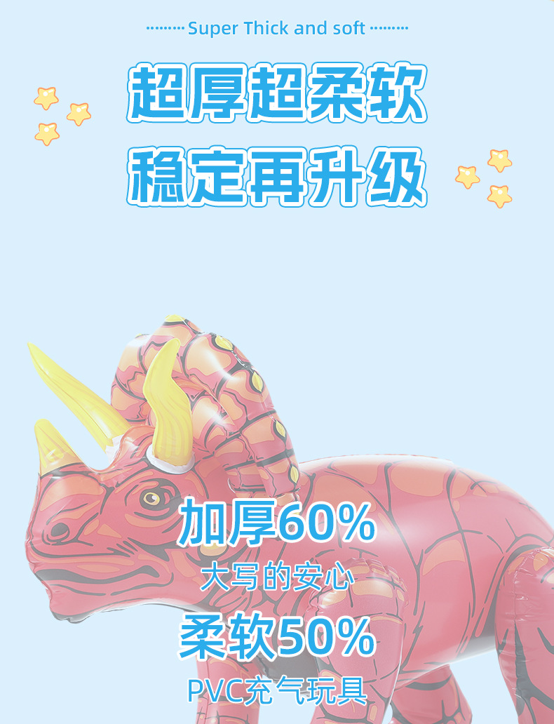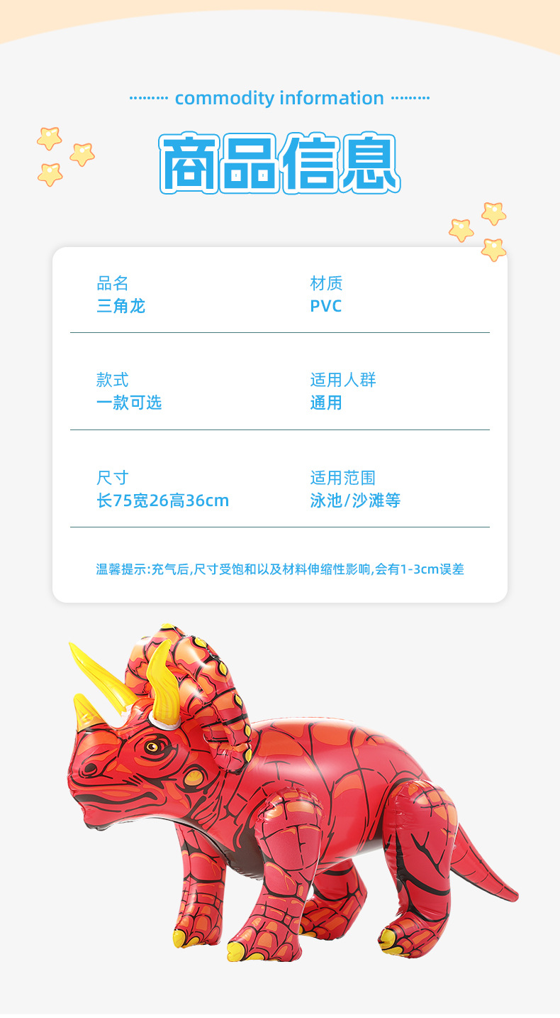 热销充气水上恐龙侏罗纪三角龙PVC玩具充气恐龙派对装饰品批发