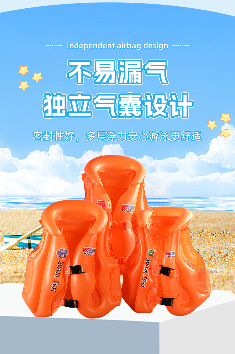 卡通充气马甲泳衣宝宝游泳装备浮力衣跨境儿童救生衣漂流背心