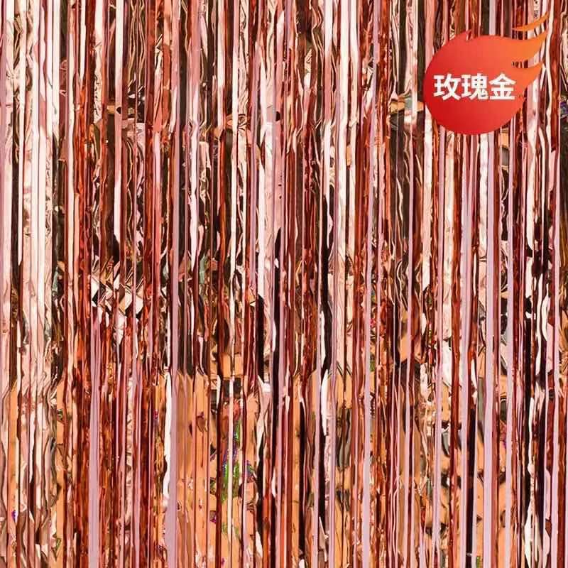 玫瑰金雨丝帘1*2米彩条玫瑰金色 婚庆舞台背景布置道具流苏雨门帘