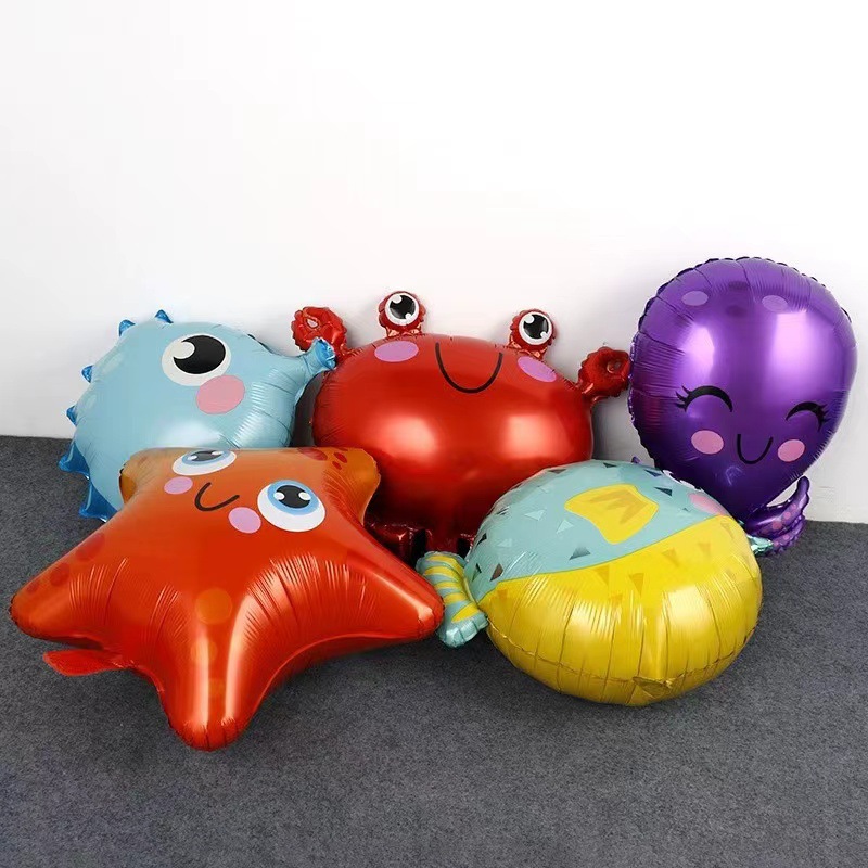 海洋主题动物海星章鱼海马儿童生日派对礼物网红地推铝膜飘空气球
