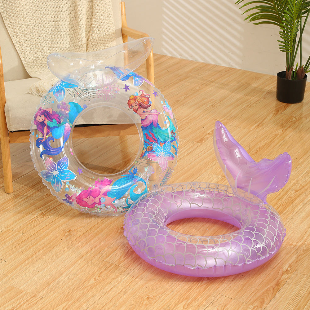 ins网红美人鱼座圈带把手 儿童可爱加厚游泳圈腋下救生圈厂家批发