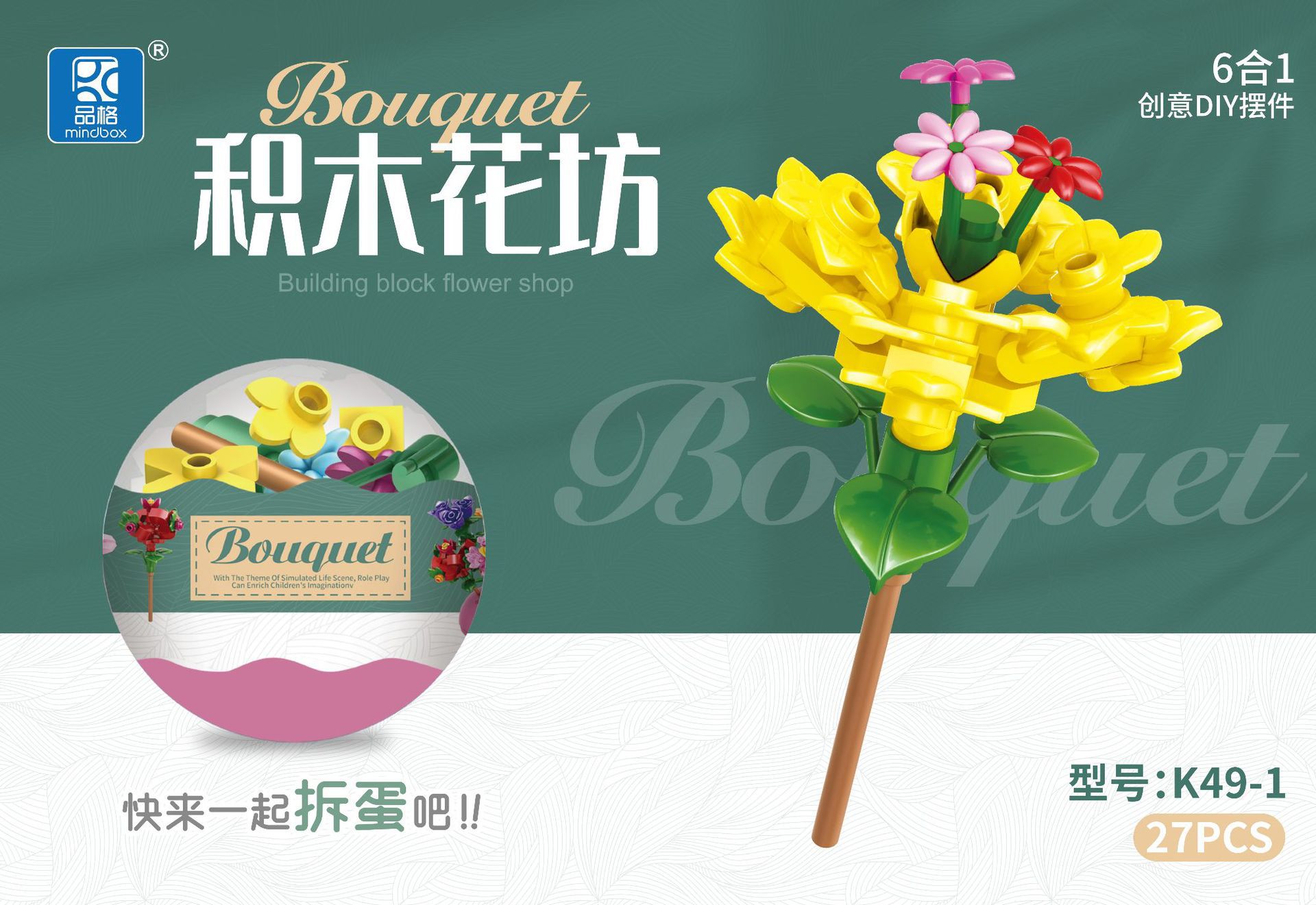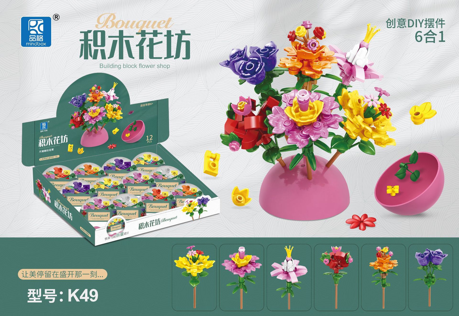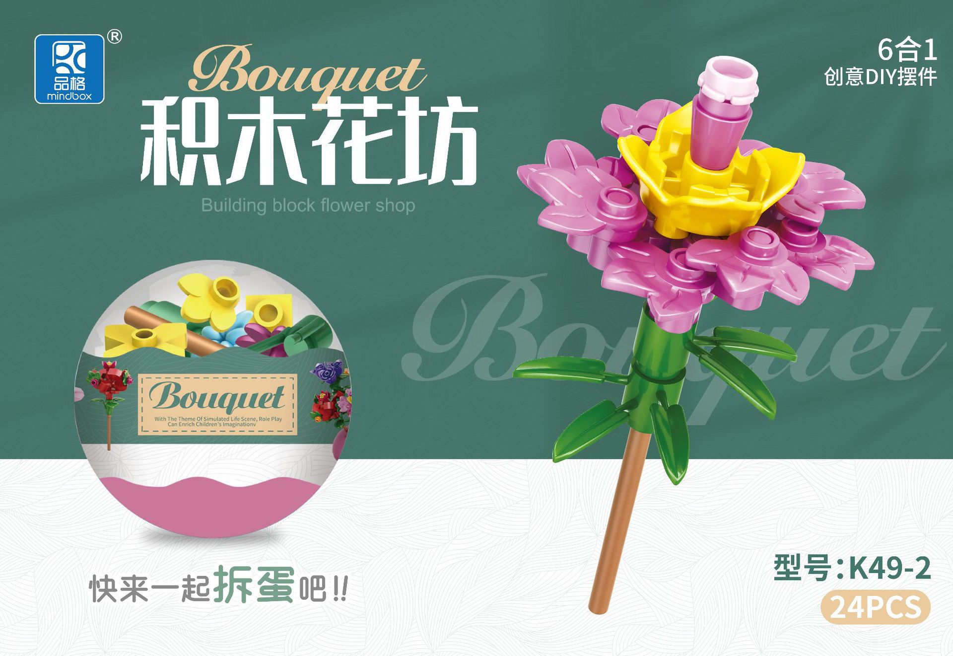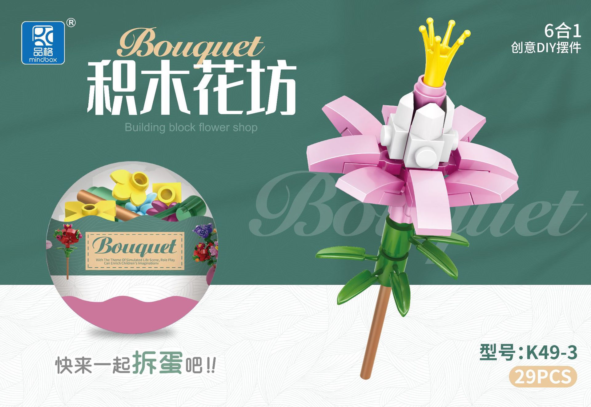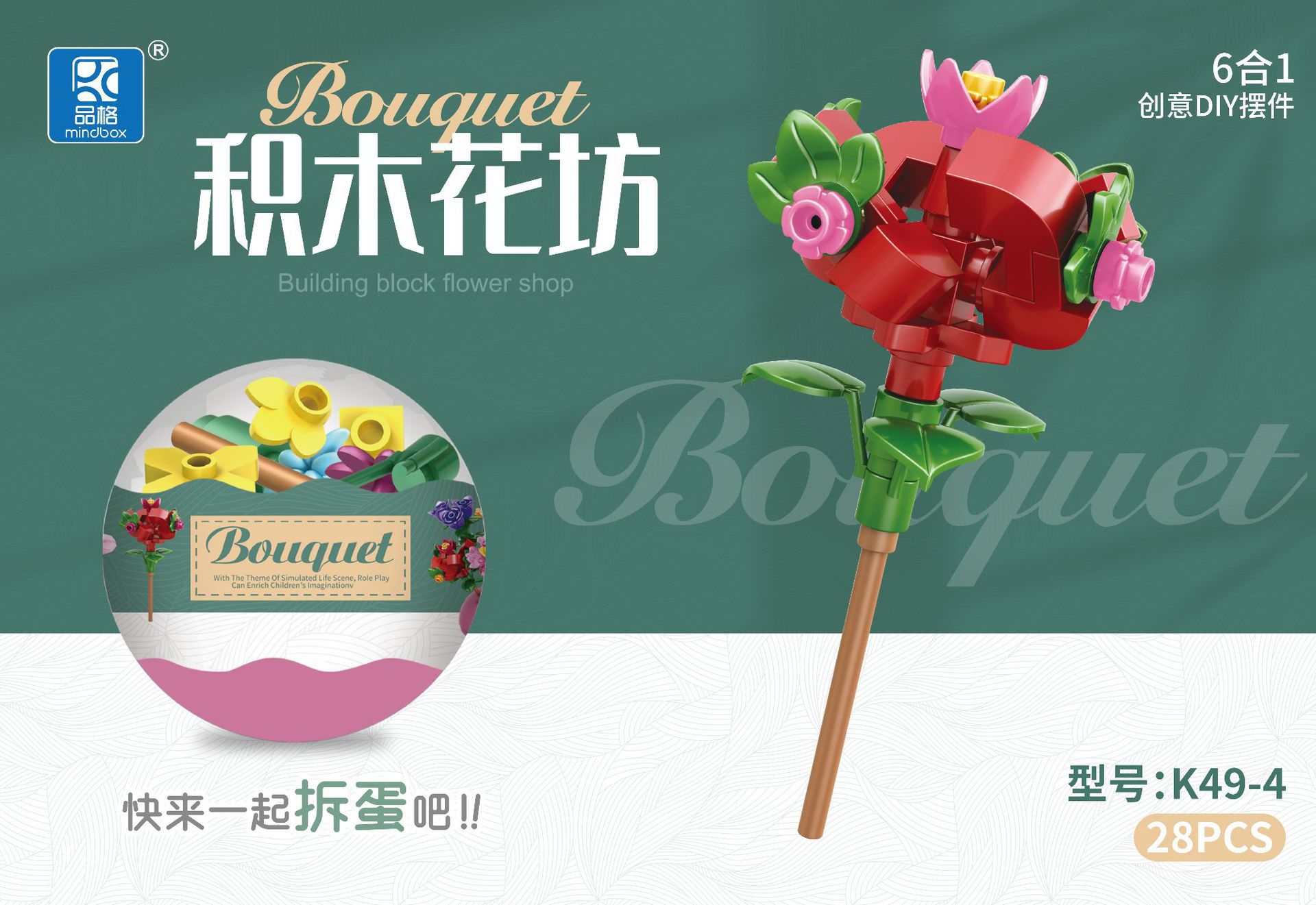 品格小颗粒积木花儿童玩具创意扭蛋DIY桌上摆件6合1花束女孩