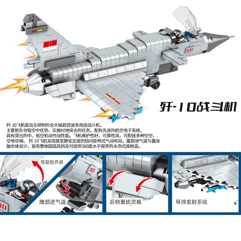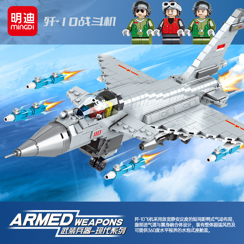 明迪航天军事K0137歼-10军事战斗机儿童男孩拼装积木玩具批发