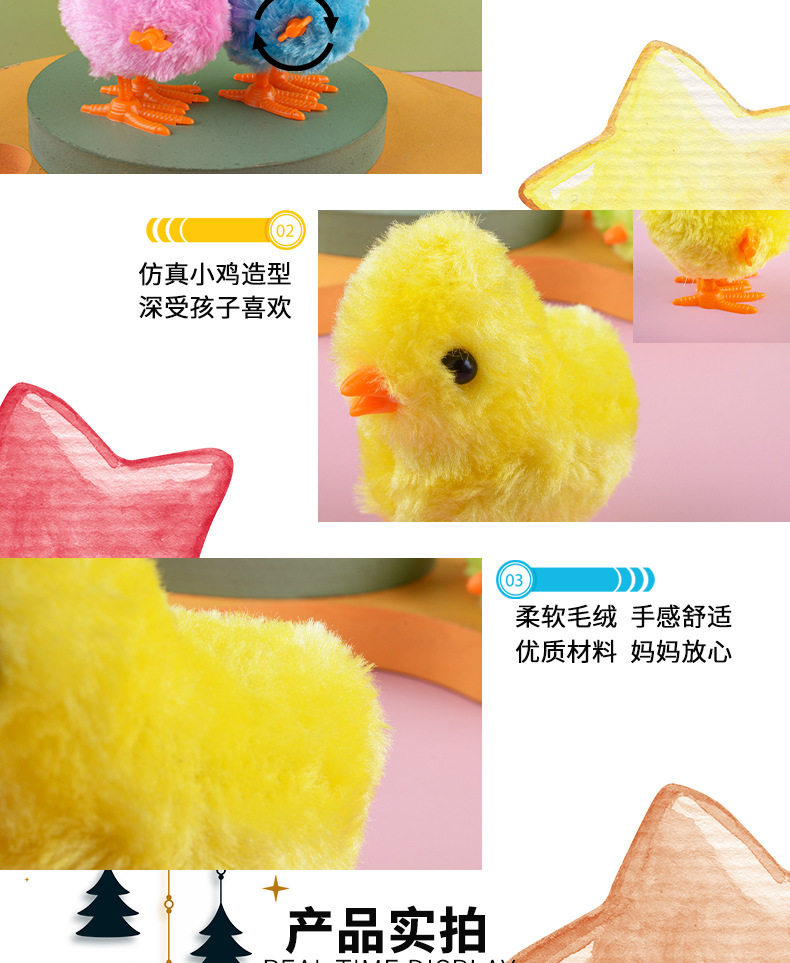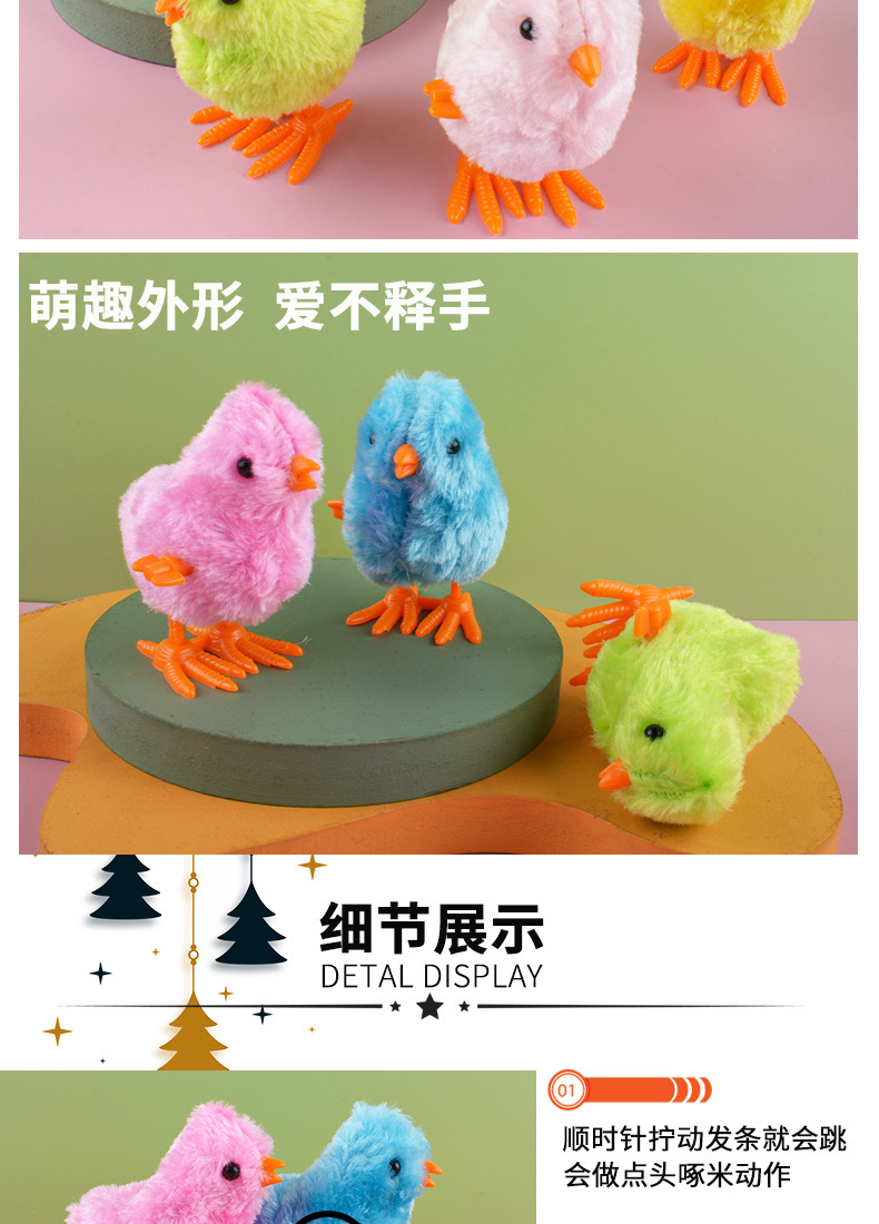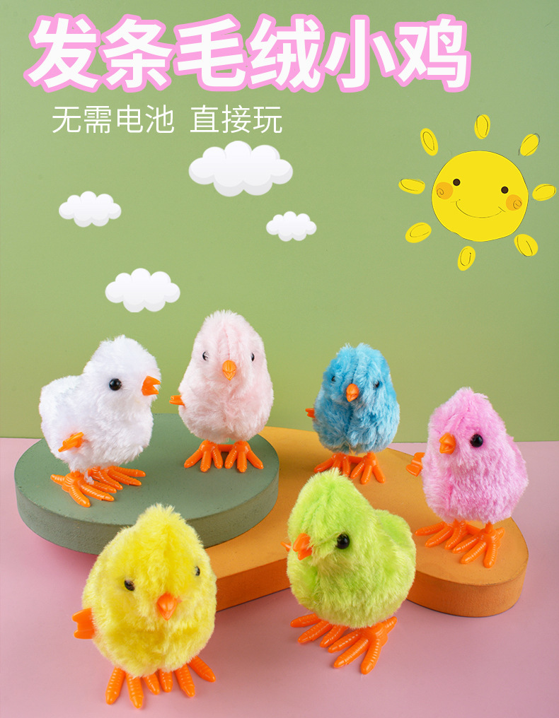 上链发条小鸡毛绒玩具仿真动物小萌鸡抖音同款儿童怀旧地摊玩具
