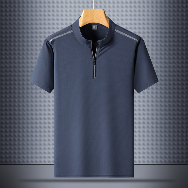 高尔夫运动休闲短袖t恤男士夏季冰丝T速干立领半袖体恤半开衫上衣
