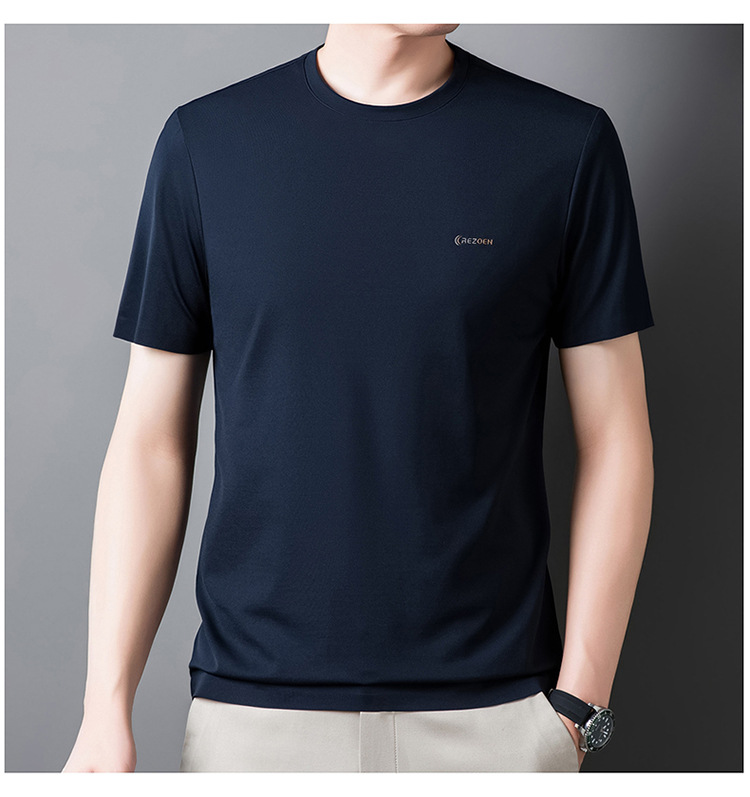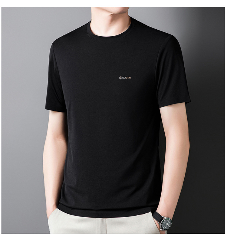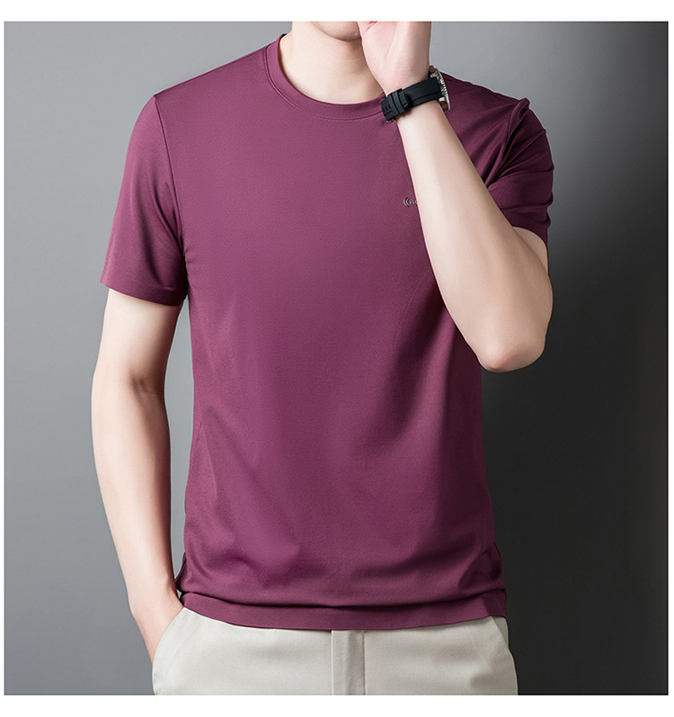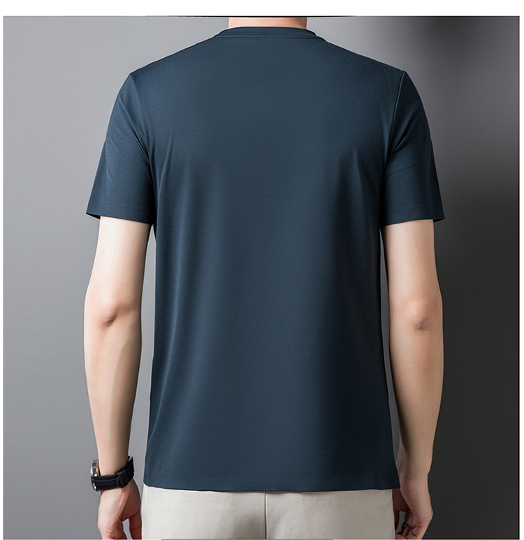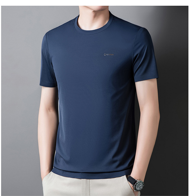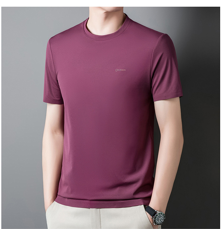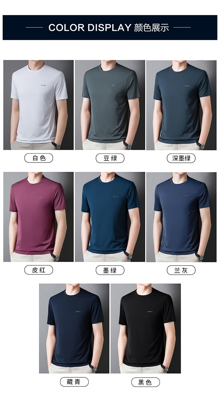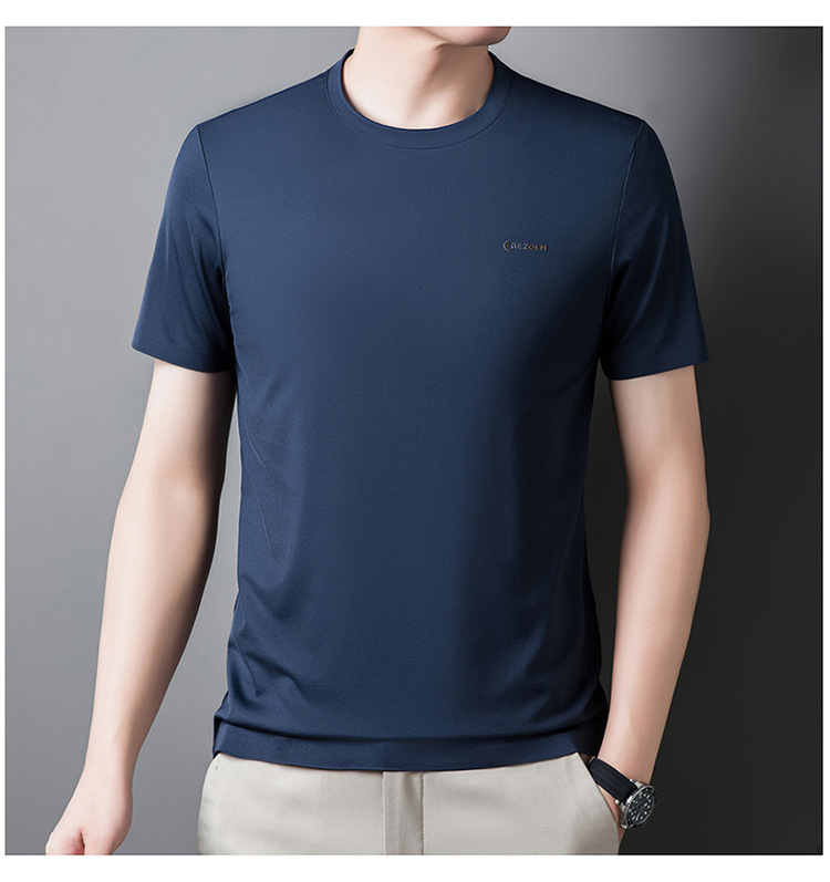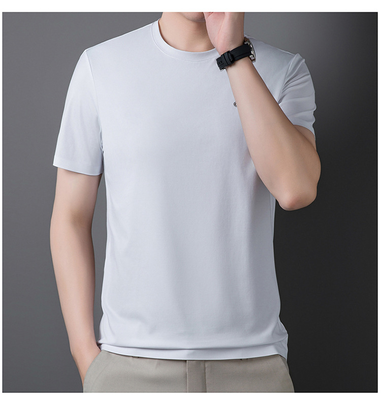 无痕含桑蚕丝圆领短袖T恤男士夏季时尚休闲打底衫冰丝上衣男代发